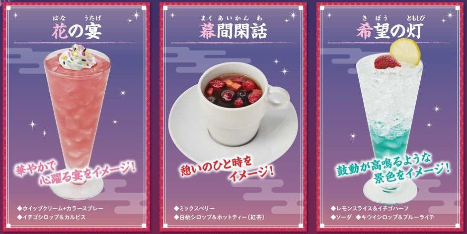 コラボドリンクメニューには、作品のオープニング曲・エンディング曲をテーマしたオリジナルコラボドリンク各750円(税込)をご用意しました。