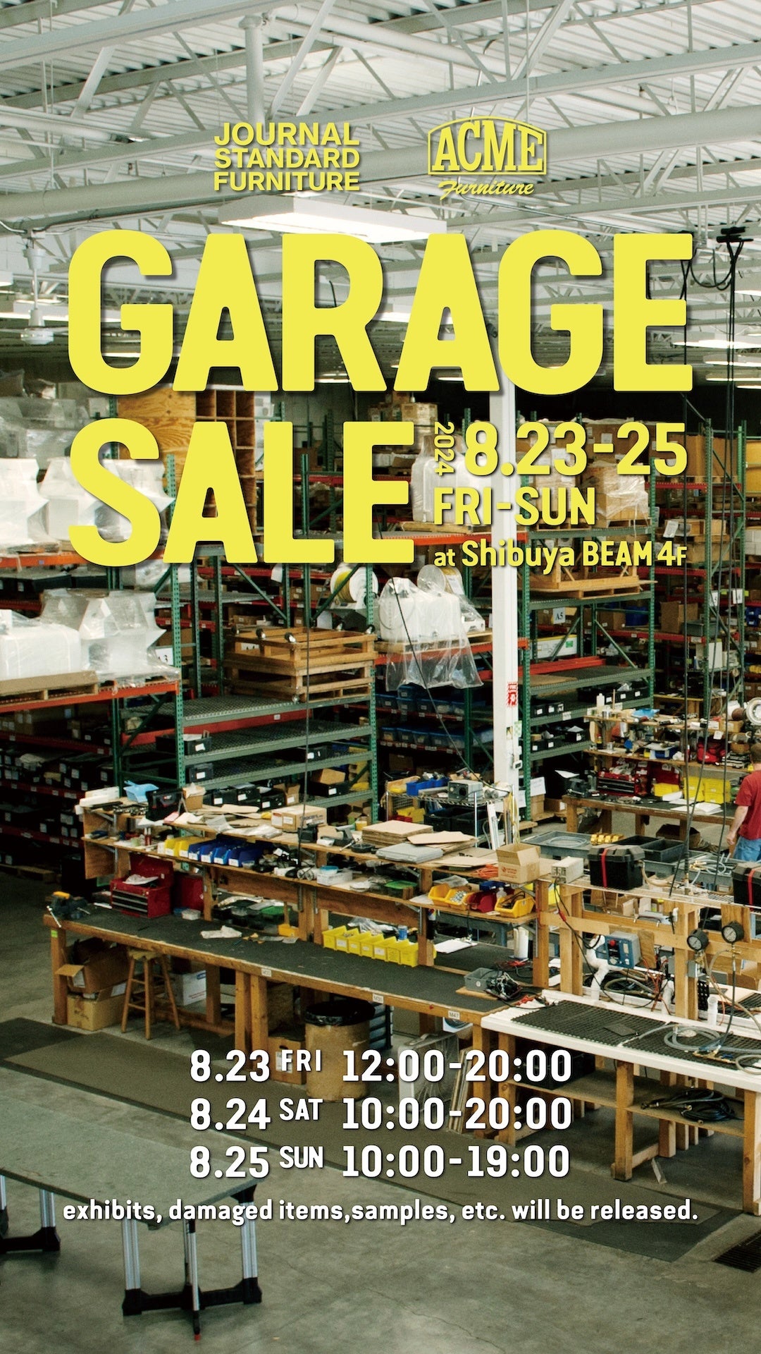 「JOURNAL STANDARD」や「IÉNA」など、衣食住美を展開する株式会社ベイクルーズ (本社:東京都渋谷区) の JOURNAL STANDARD FURNITUREとACME Furnitureは、8月23日(金)~25日(日)の3日間、倉庫で眠っていたサンプル品や展示品、 B品、廃盤品を販売するスペシャルイベント「GARAGE SALE」を渋谷 BEAM 4Fで開催いたします。