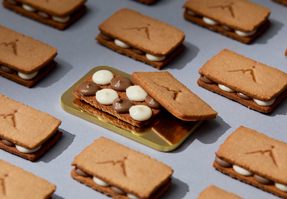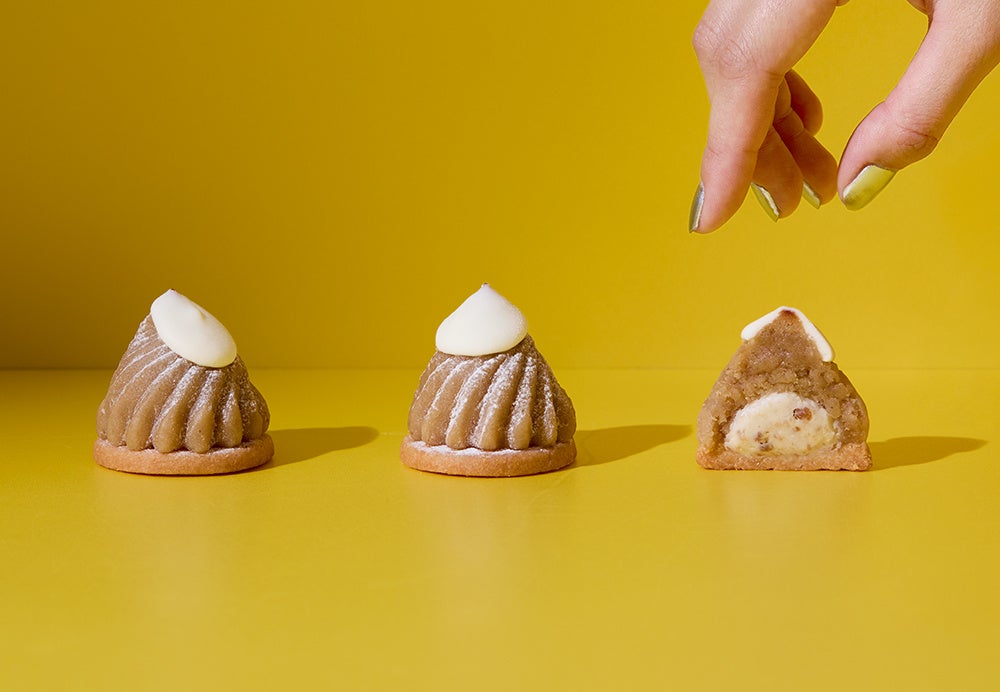 風味豊かな和栗のクリームとミルクホイップを交互に乗せて、バター香る軽やかなサブレでサンド。サブレには、ブランドシンボルである山の姿の焼印が。サクッとかじれば、お口の中がモンブラン!出来立ての美味しさを頬張って。