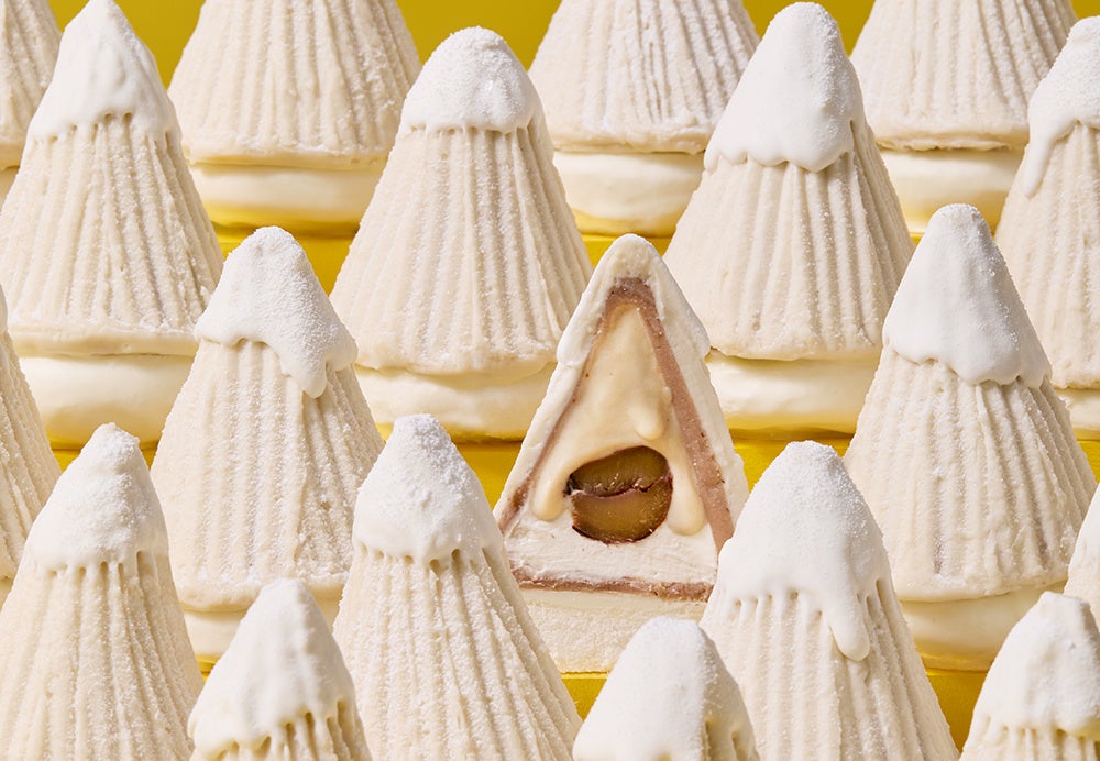ぽってり雪帽子姿が愛らしい“ひとくち焼きモンブラン”。和栗たっぷりのマロンクリームを、“最高食感しぼり”で贅沢な厚みにしぼりました。中にはラム酒香るミルキークリームと刻んだマロングラッセを散りばめて。絶妙な焼き加減から生まれる、ほっくりとろける“生食感”。そのなめらかでマロンリッチな味わいをどうぞご堪能ください。