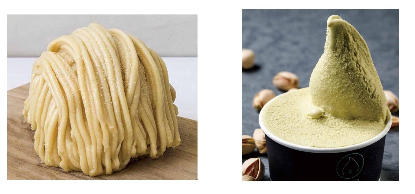 【前半】[福岡]オスピターレ/スフォリアテッラ①マロン②ピスタチオ(1個)各421円 実演