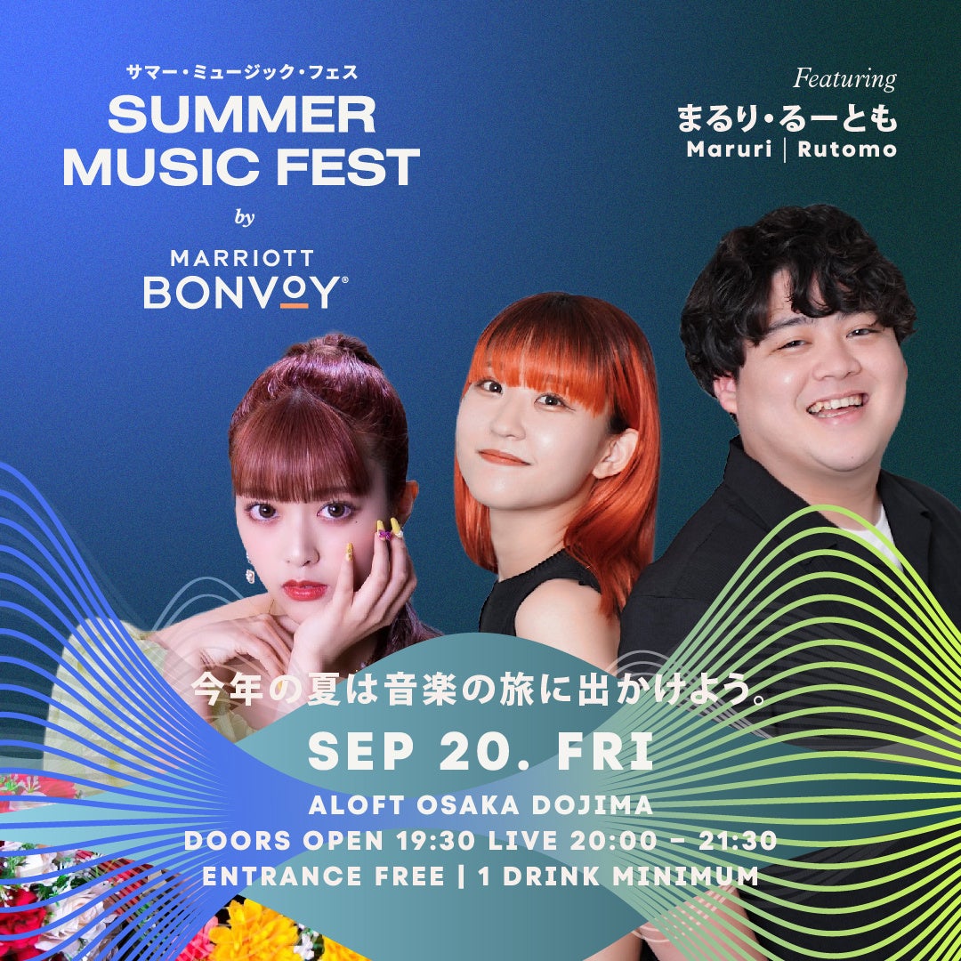 「アロフト大阪堂島」(大阪府大阪市北区堂島浜2-1-31、総支配人:ニジャド・ファレス)では、来月9月20日(金)に、人気アーティストの「るーとも」と「まるり」を迎えて夏の音楽イベント「SUMMER MUSIC FEST 2024」を、オールデイダイニングレストラン「The WAREHOUSE」にて開催いたします。The WAREHOUSEの多彩なお食事や、夏ならではの爽やかなドリンクを片手に、ライブミュージックとともにこの夏を締めくくる最高の一夜をお楽しみください。
