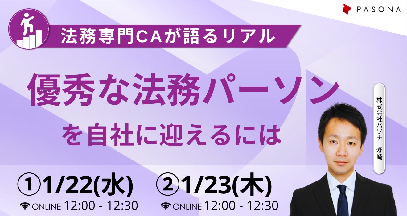 ウェビナー『優秀な法務パーソンを自社に迎えるには~法務専門CAが語るリアル~』 1月22日、23日開催