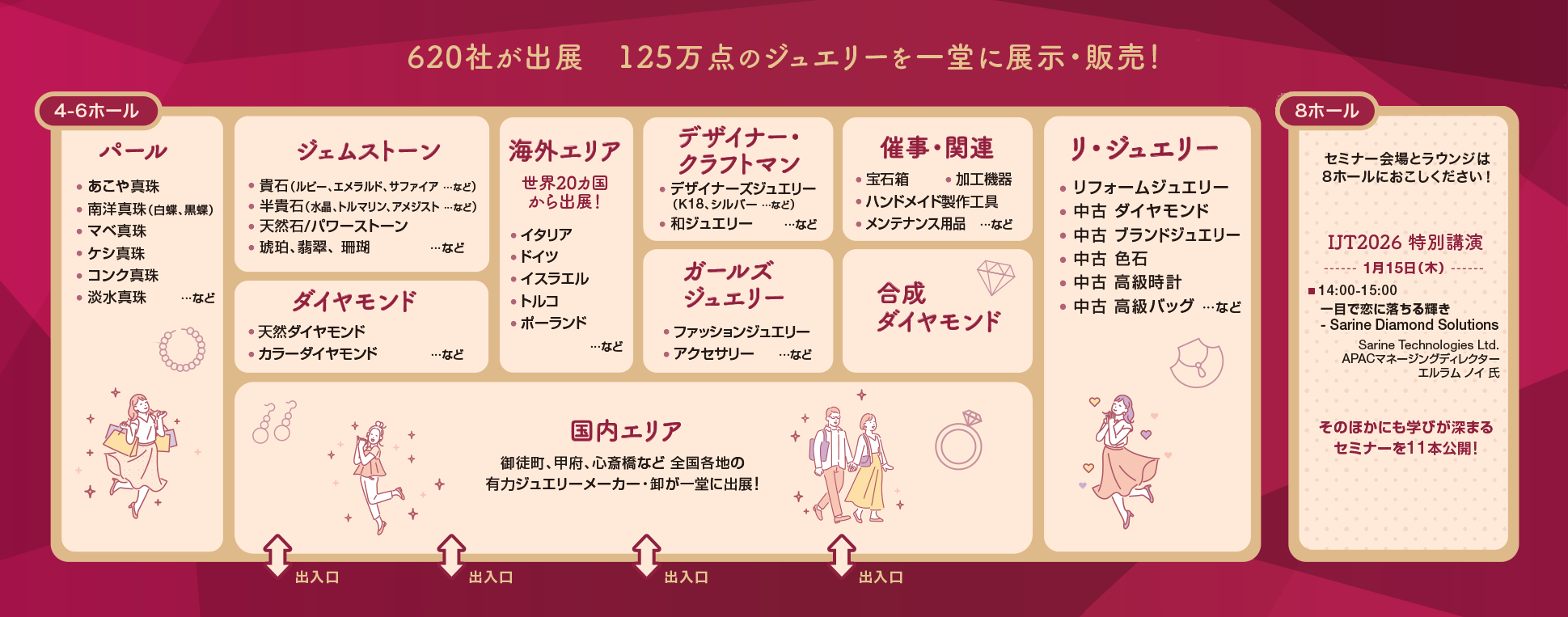 来年、2026年1月14日(水)~17日(土)の4日間、東京ビッグサイトにて日本最大級のジュエリー展「国際宝飾展」を開催します。本展には、620社 125万点のジュエリーが出展予定です。
