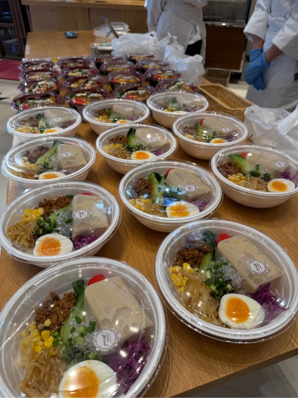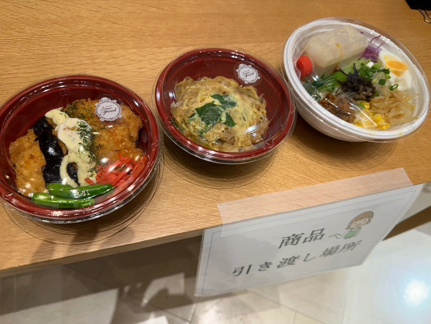10月23日の11:00~テイクアウト形式で販売スタートをし、学生が実習で作った「かつ丼」と「親子丼」も一緒に販売。地域の方々や近隣の専門学校の学生を含めて多数来場され、1時間程度で全180食を完売することができました。