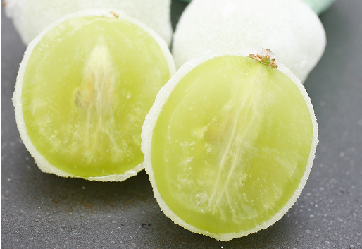 冷やしたら!中に一粒入っているマスカットオブアレキサンドリアが更に爽やかに甘酸っぱく、パリッとした食感に!