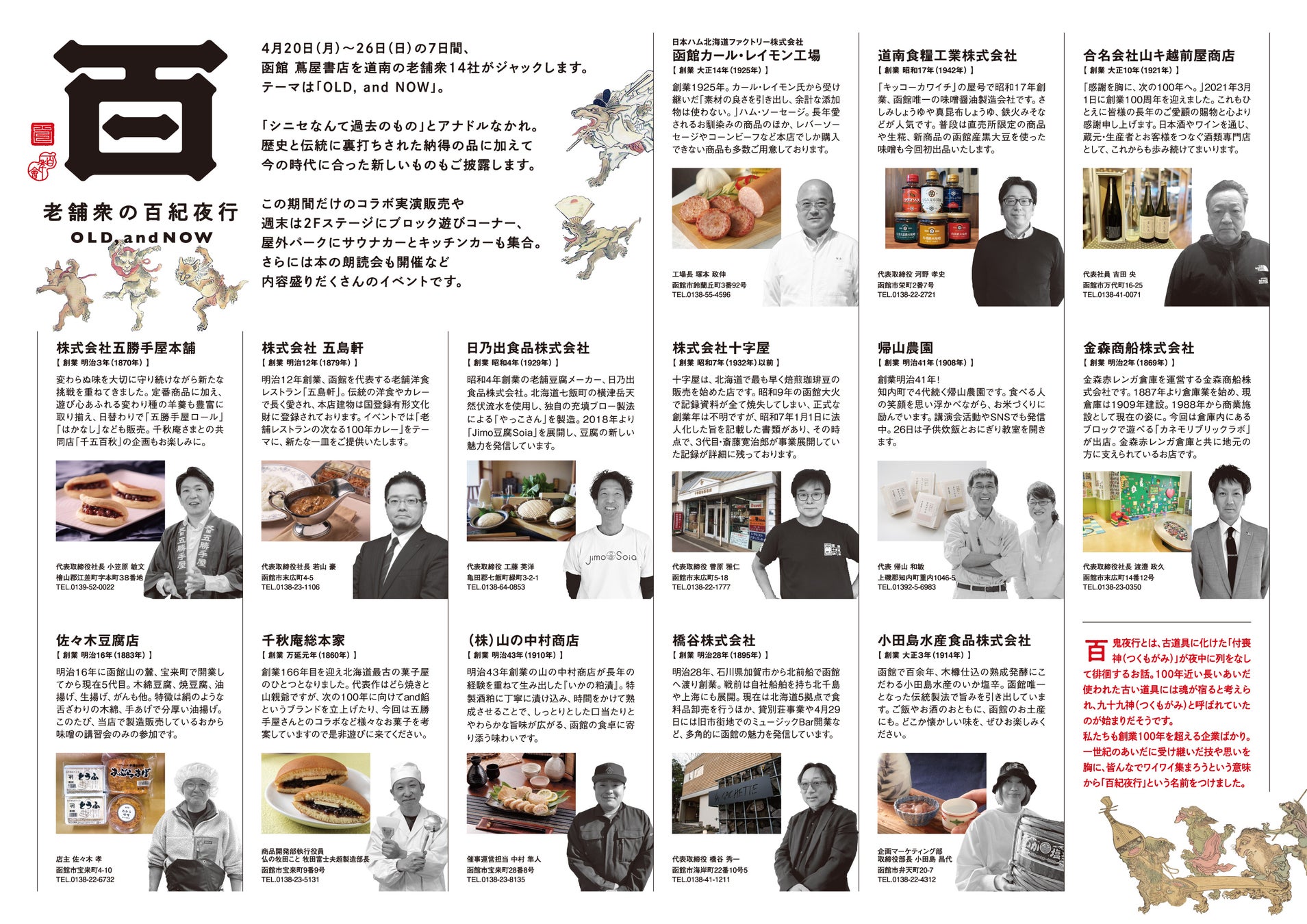 【函館 蔦屋書店】道南の老舗企業が集まる「百年祭 老舗衆の百紀夜行 OLD, and NOW」を4/20(月)より開催