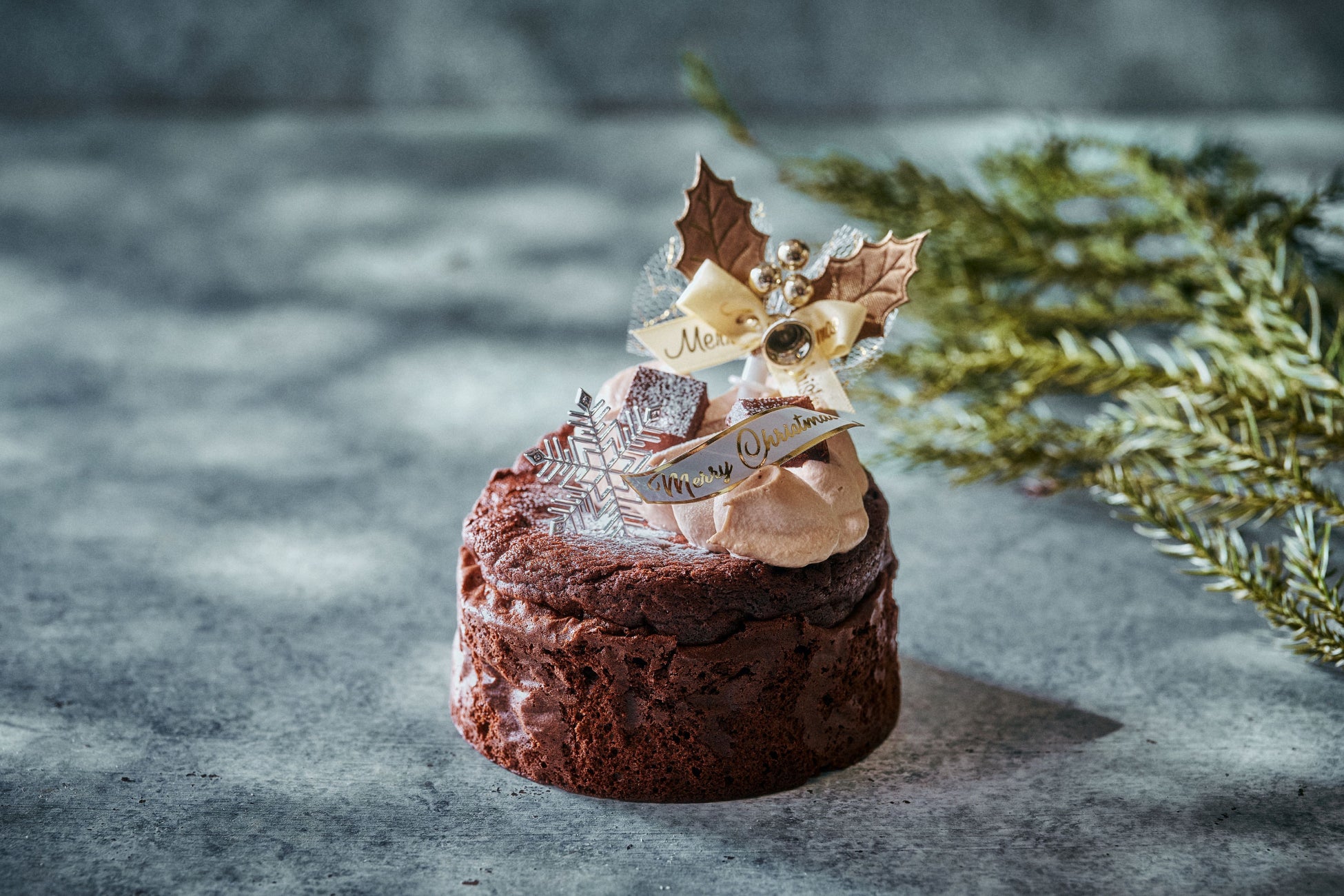 フランス産“ヴァローナ”のチョコレートを用いてふっくらと焼き上げたクラシックタイプ。外はほろり、中はしっとりのコントラストで、カカオのほろ苦さとコクが広がります。ホイップとオーナメントで季節感を添え、シンプルながら満足度の高い味わいに。