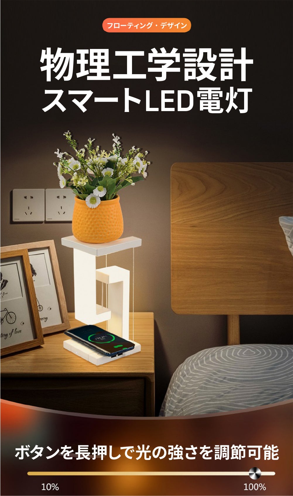 【LED照明機能搭載/最大10Wワイヤレス充電/お部屋のインテリアに/スマートに収納/Type-C給電】