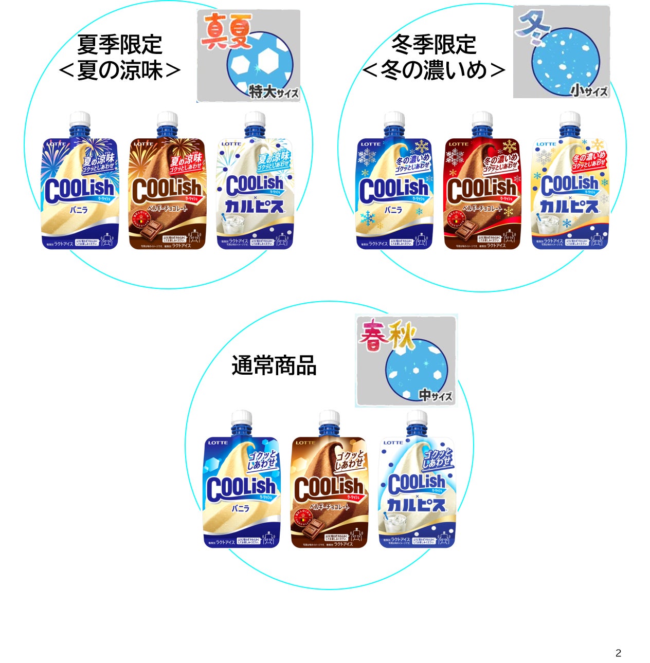 株式会社ロッテは“飲むアイス”の「クーリッシュ」ブランドから、冬季限定商品として『クーリッシュ冬の濃いめ』3品を10月上旬より順次リニューアル発売いたします。今回のクーリッシュは、微細氷のサイズを小さくし、マイルドな冷涼感が楽しめる仕立てにしました。味わいは、冬向けの“濃いめ”品質が楽しめます。デザインは雪の結晶や冬に合わせた色合いで、季節感を表現しています。この時期に、冬ならではの濃いめのクーリッシュの味わいをお楽しみください。