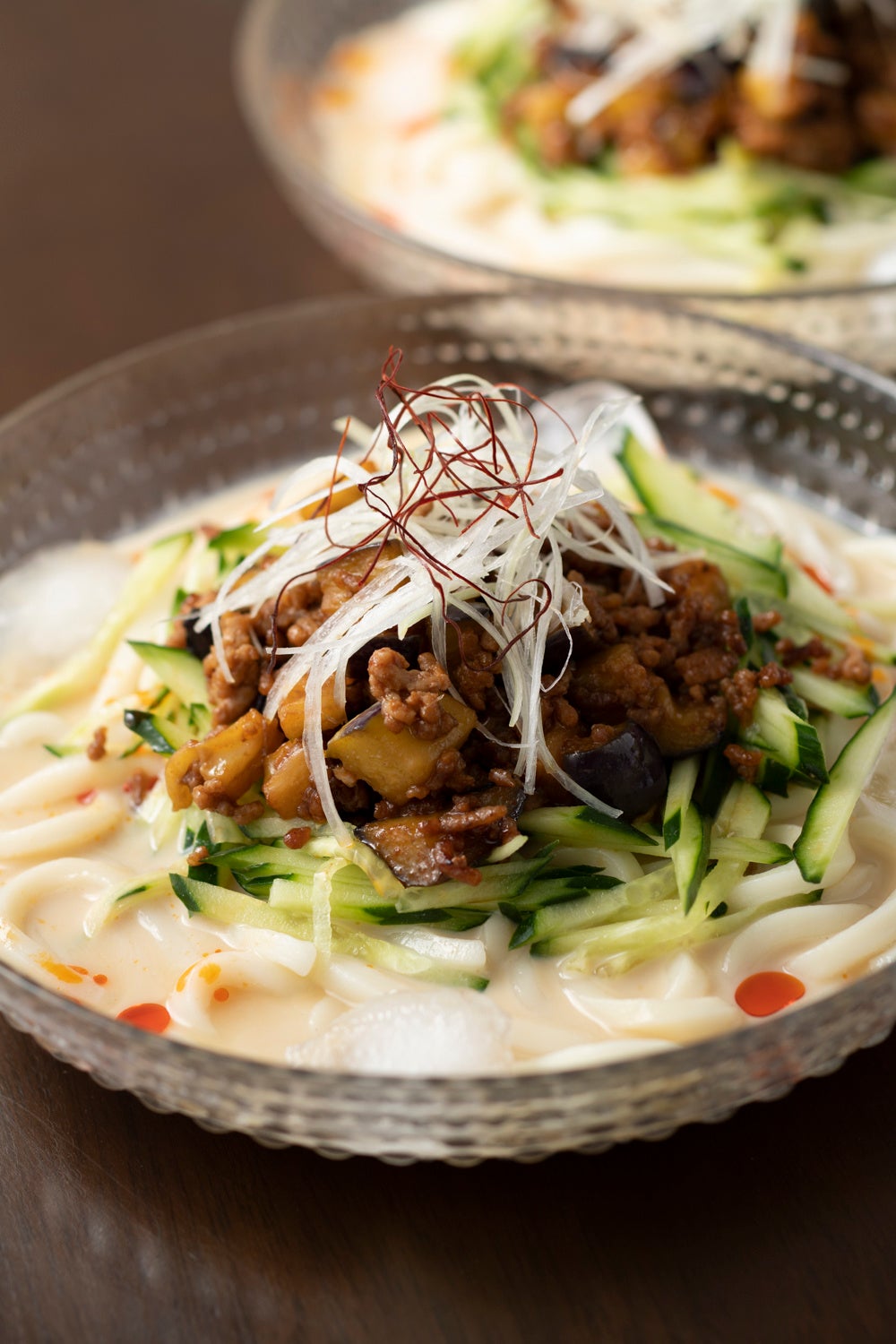 なすの冷やし肉みそ坦担うどんは誰が食べても美味しいと絶賛してくれる自信作なのだそう。