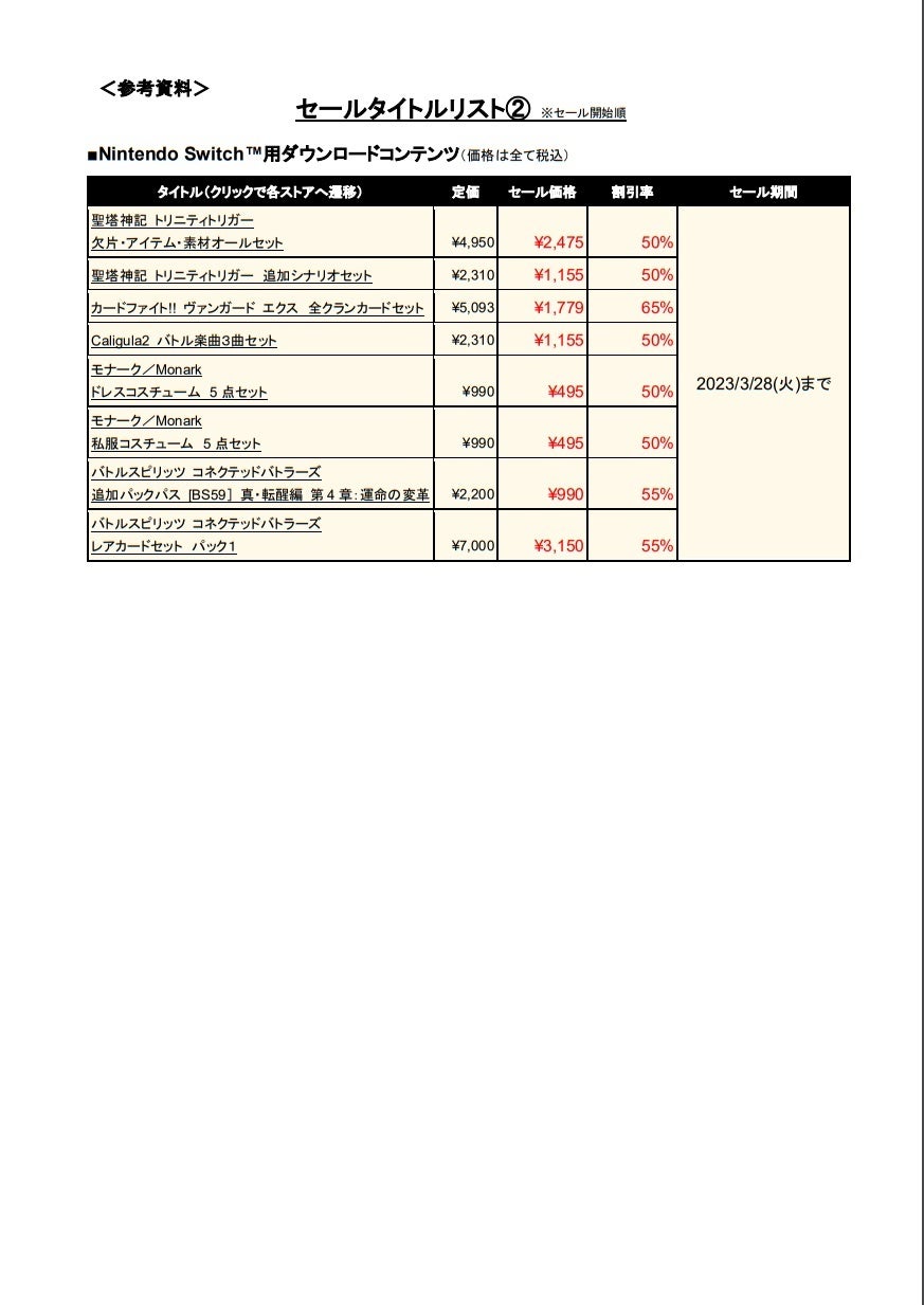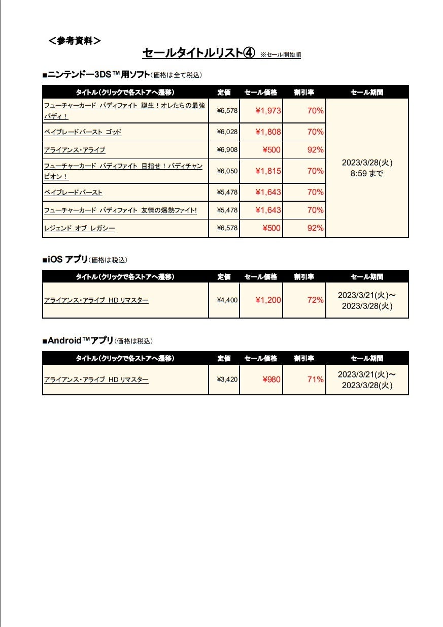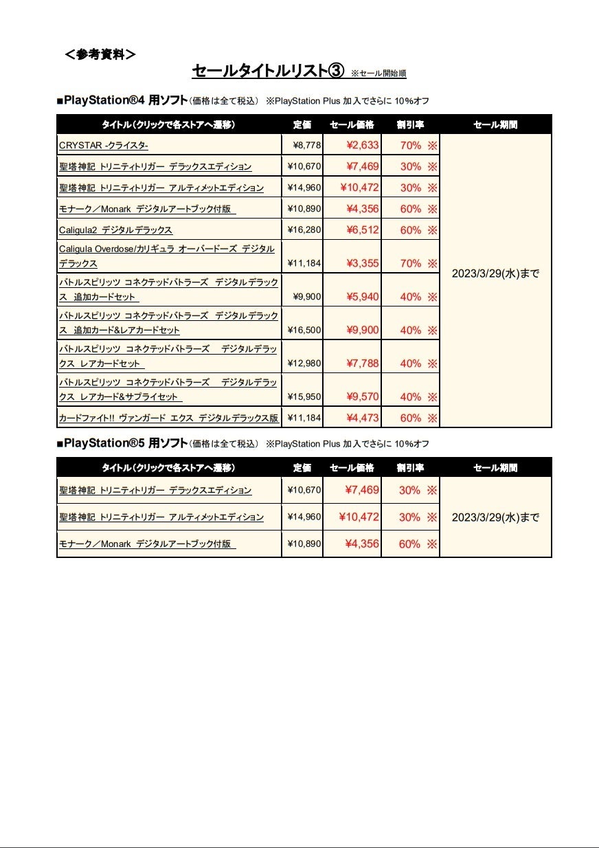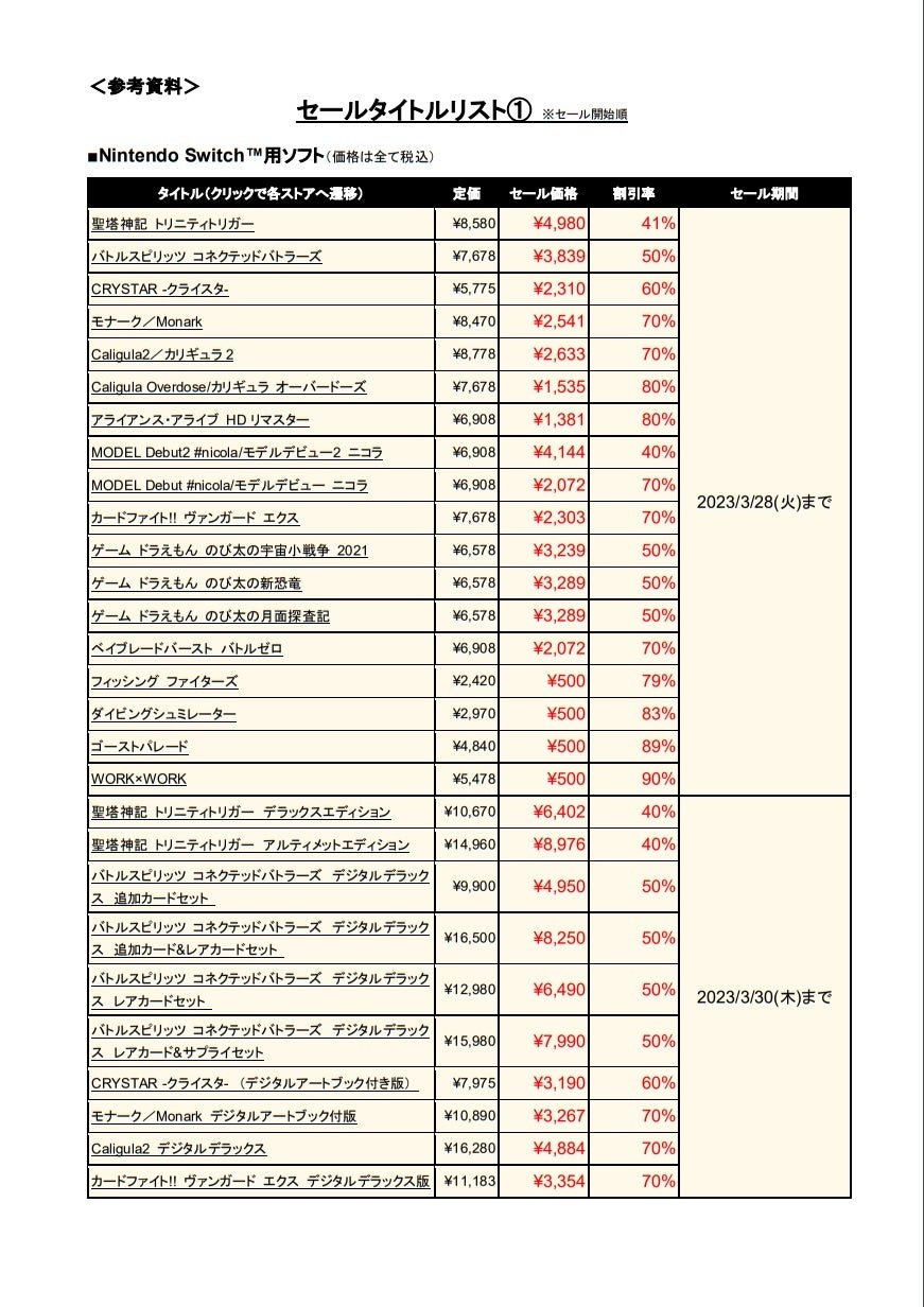 その他のセールタイトル、セール期間など詳細はセールタイトルリストをご覧ください。