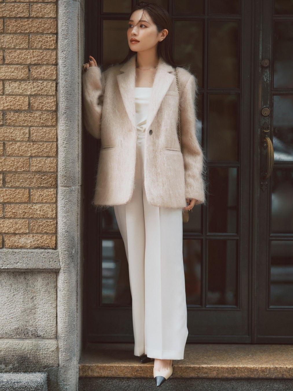 モヘアの起毛感が華やかなジャケットは、秋口から活躍すること間違いなし。あえてメンズライクなオーバーサイズに仕上げました。すとんとしたボクシーシルエットがこなれたムードを発揮してくれます。サテンのロングスカートやセンタープレスパンツなど、綺麗めなボトムスとも好相性!ベルトでウエストマークする着こなしもおすすめです。