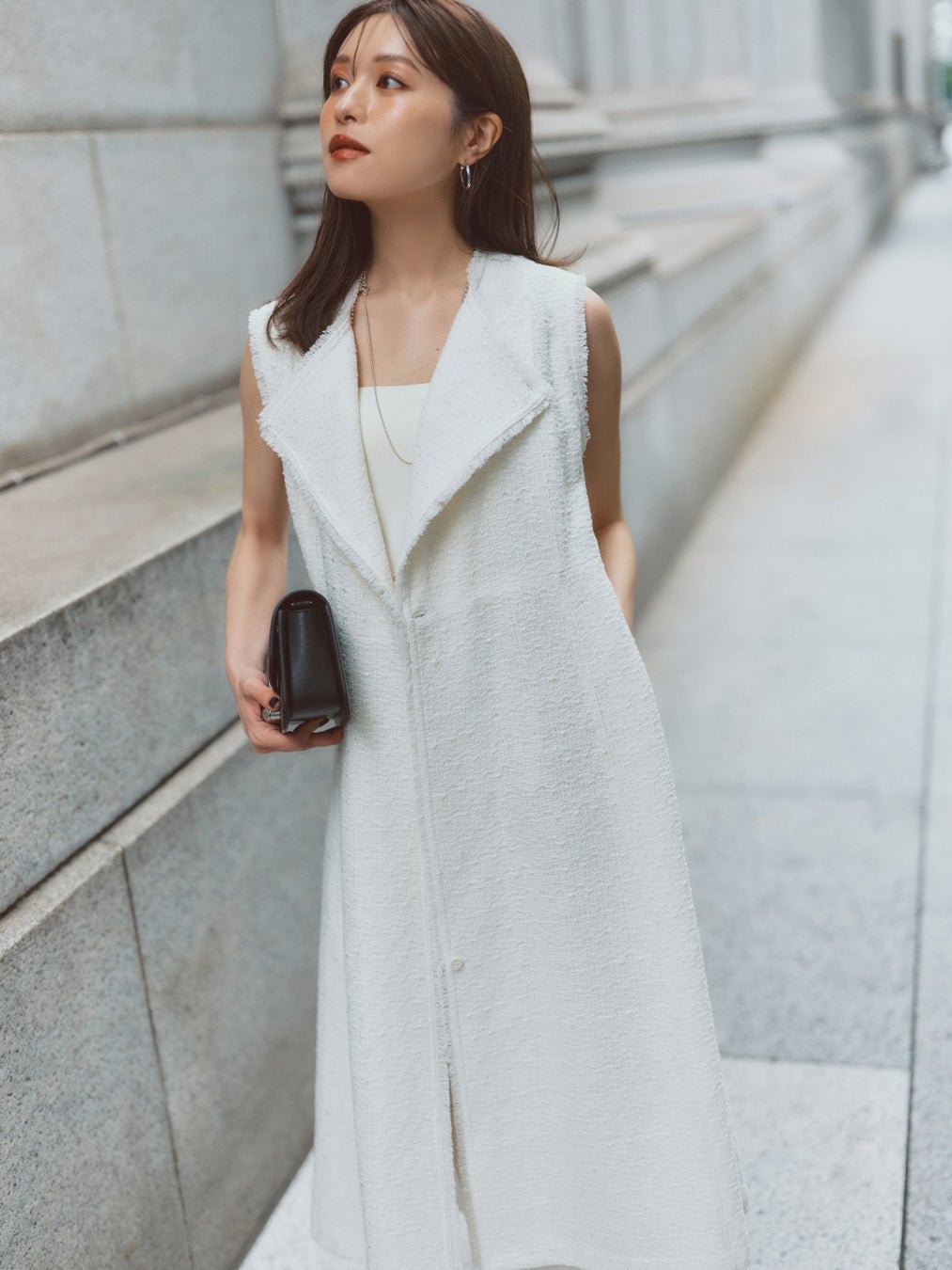 “凛とした女らしさ” を女性像に掲げるノーブルが、ローブ ブランの手がけるウェアコレクションに感銘を受けオファー。「L’AUBE BLANC(ローブ ブラン)」ディレクターであり、自身のスタイルブックにも定評のある 楫真梨子さんをモデルに、待望のコラボレーションLOOKを公開した。