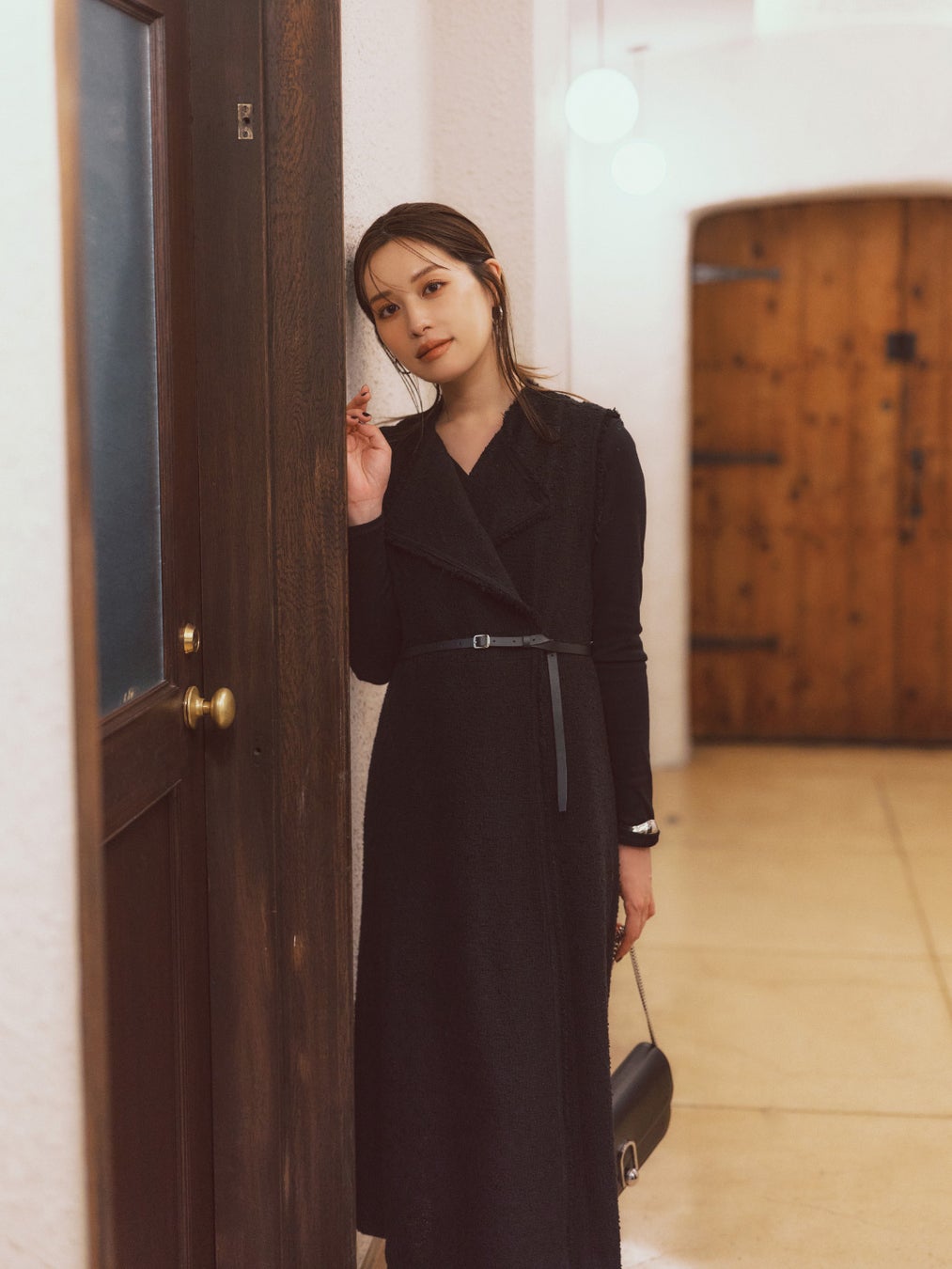 レフィエ×NOBLE×L’AUBE BLANCのトリプルコラボの牛革ベルトは、アウターの上からも合わせられるよう、やや長めのつくりに。バックルが小ぶりで主張し過ぎないので、合わせるジュエリーを選ばず、幅広い着こなしにマッチします。今回のコラボ服との相性も◎。コーデが簡単に新鮮見えするので、一本あると便利です。