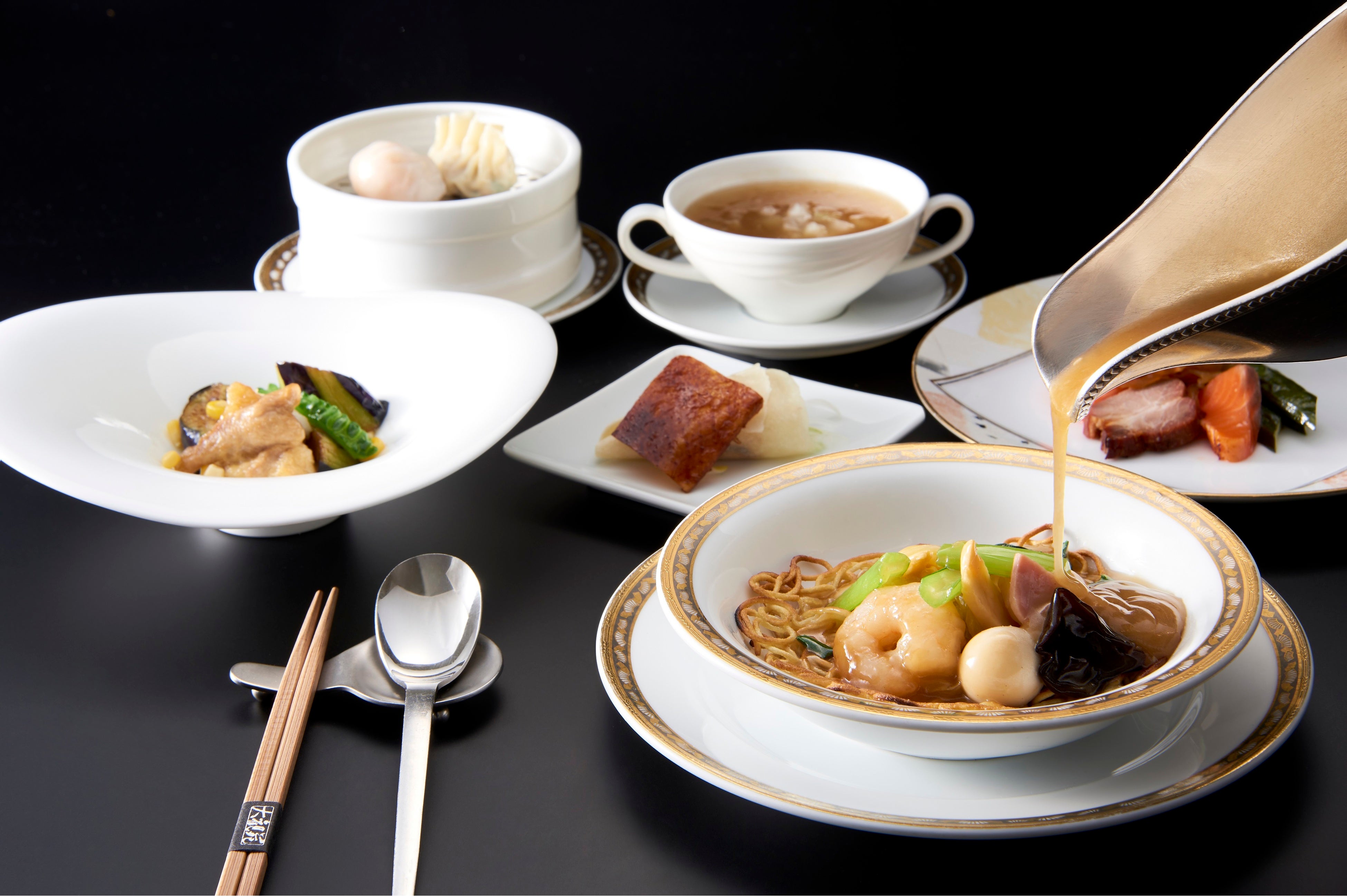 当プランでは、中国料理の2大高級食材に肉グルメまで愉しめる、中国料理「大観苑」のシグネチャーメニューを取り揃えた特選ディナーコースをお愉しみいただけます。「六種前菜盛り合わせ」に始まり、高級食材の「ふかひれ」や「北京ダック」、さらにボリューム満点な「牛サーロイン ブラックビーンズ炒め」など、王道にして究極の全7品をご用意。通常¥12,000相当のディナーコースが愉しめる特別プランで、贅を尽くしたひとときをお過ごしください。