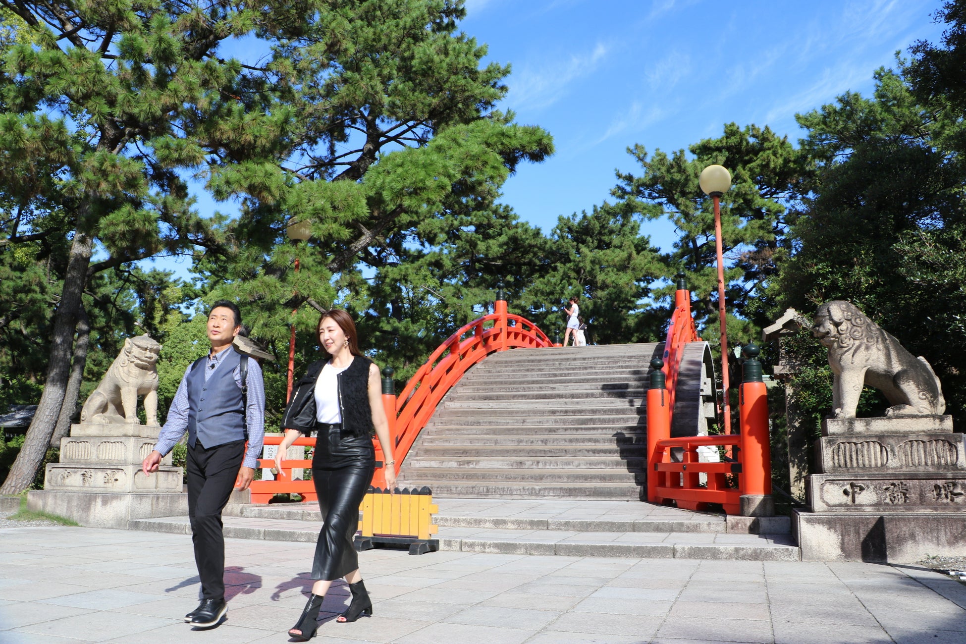 続いて長居から少し足を延ばし、2人が向かったのは、住吉大社。1800年以上の歴史を持ち大阪一の親しみとパワーを兼ね備える神社。今回は権禰宜の奥野さんに、境内を案内してもらいます。住吉大社の中でも特別な聖地とされる「五所御前」の中にあるパワースポットへ。『五』『大』『力』と書かれた石を拾い御守にすると体力・智力・財力・福力・寿力を授かるといわれています。2人も体験、果たして…?