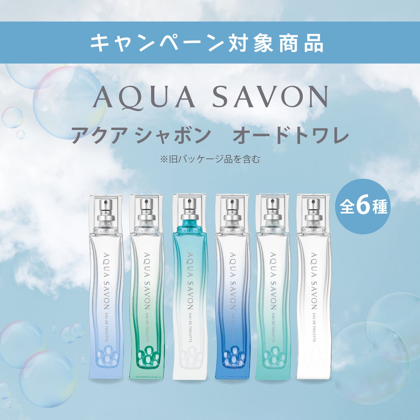 期間中、アクア シャボン対象商品をご購入いただき、購入レシート、または公式オンラインストアでの購入完了画面の送付でご応募いただけます。