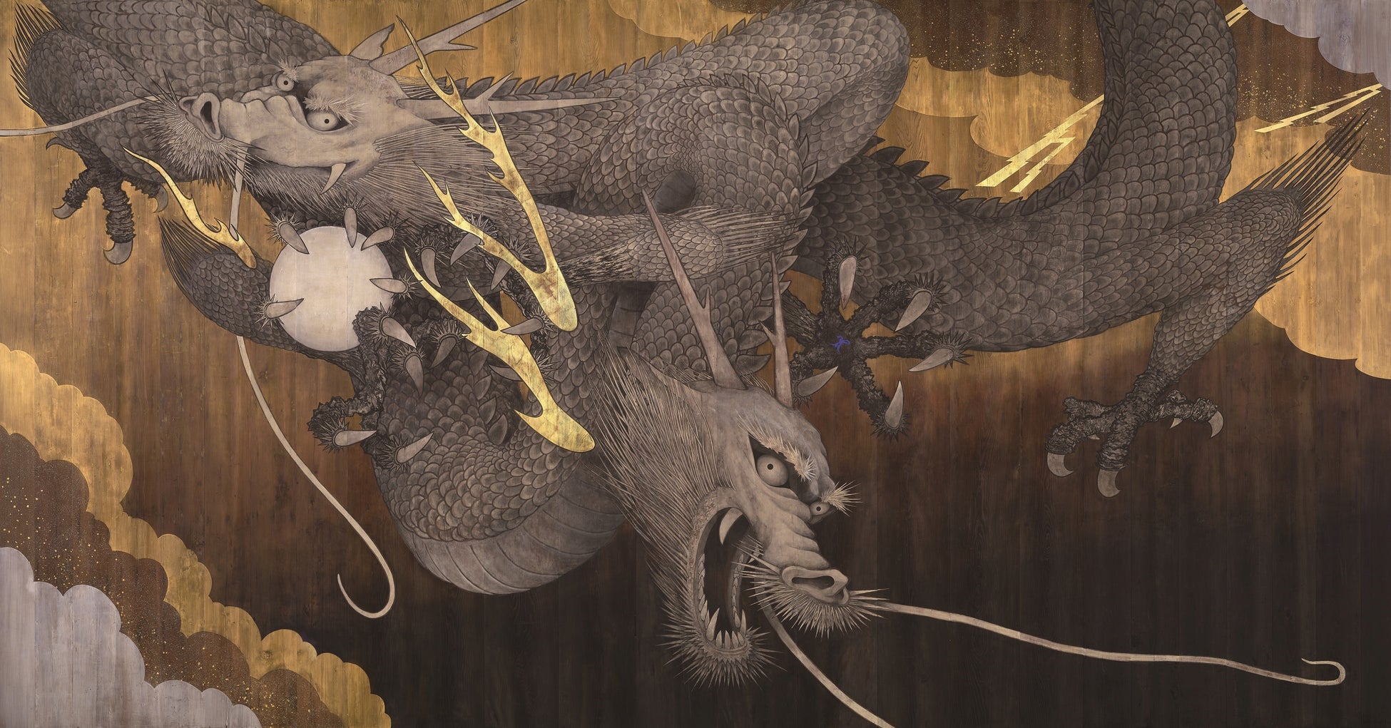 「今」を結ぶ新たな試みです。描き出される2 頭の龍は手塚が初めて挑むモティーフで、コロナ禍、