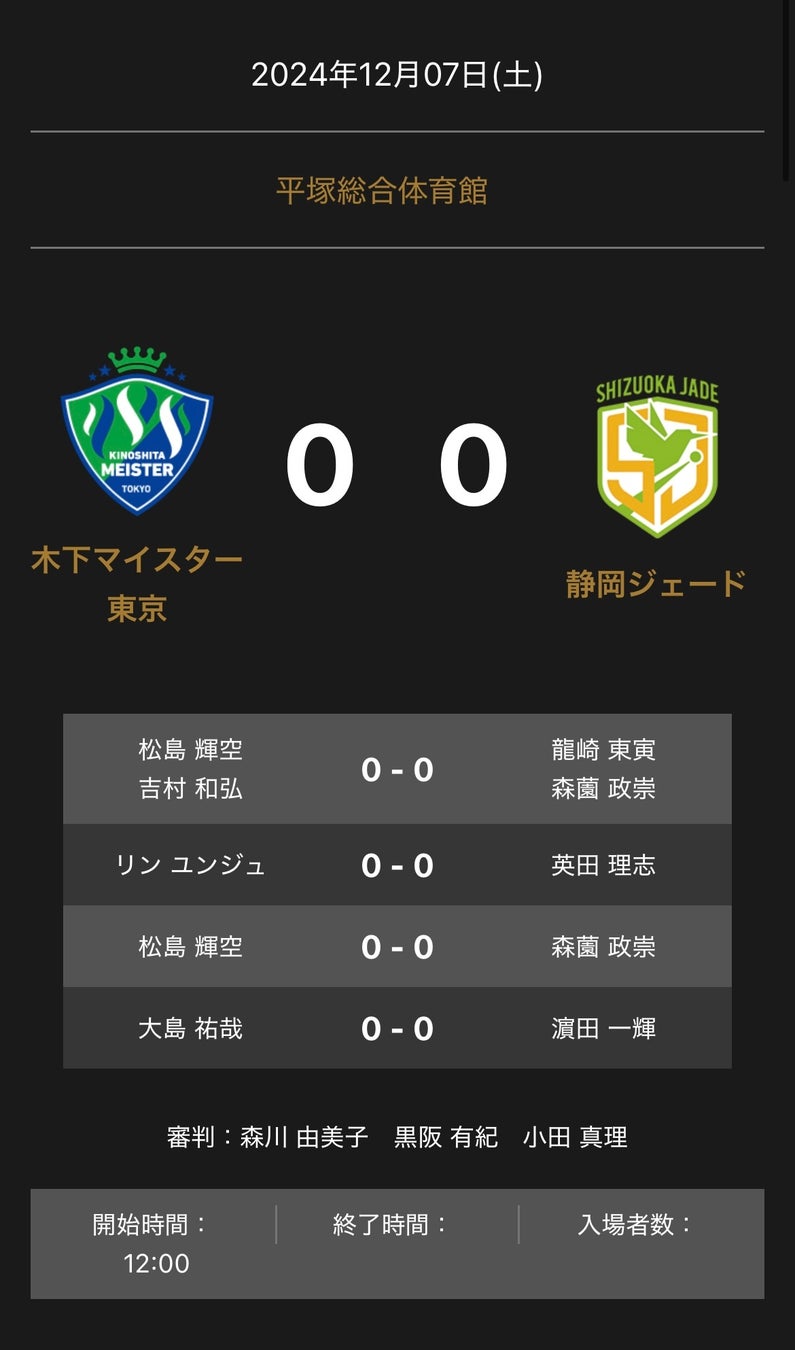 ノジマTリーグ 2024-2025シーズン 公式戦 12月7日開催 木下マイスター東京 vs 静岡ジェード 対戦オーダー発表