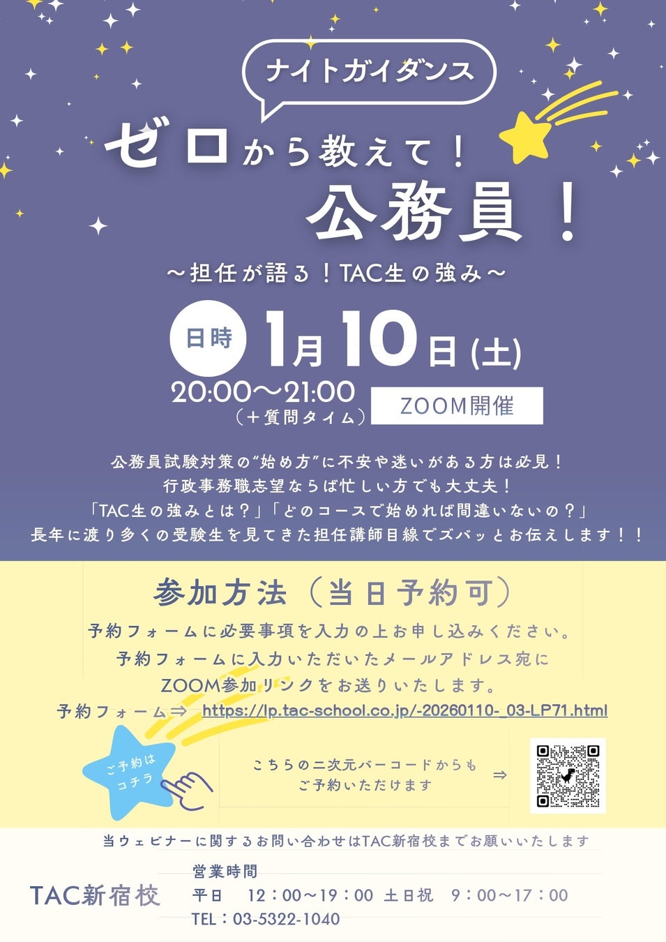 【TAC公務員】ナイトガイダンス「ゼロから教えて!公務員!~担任が語る!TAC生の強み~」を2026年1月10日(土)に開催!