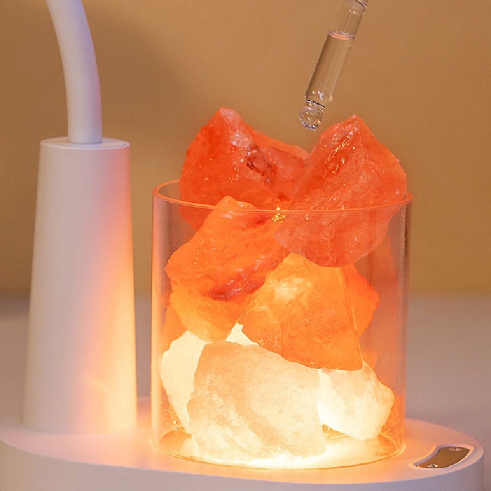 GeeLampに付属したクリスタルソルトは、人体に必要な数十種類の微量元素を豊富に含んでおり、柔らかく光る見た目は癒やし効果があります。