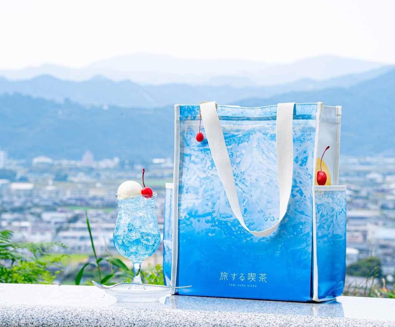 クリームソーダの美しさを表現!バッグの真ん中には「旅する喫茶」のロゴ入り