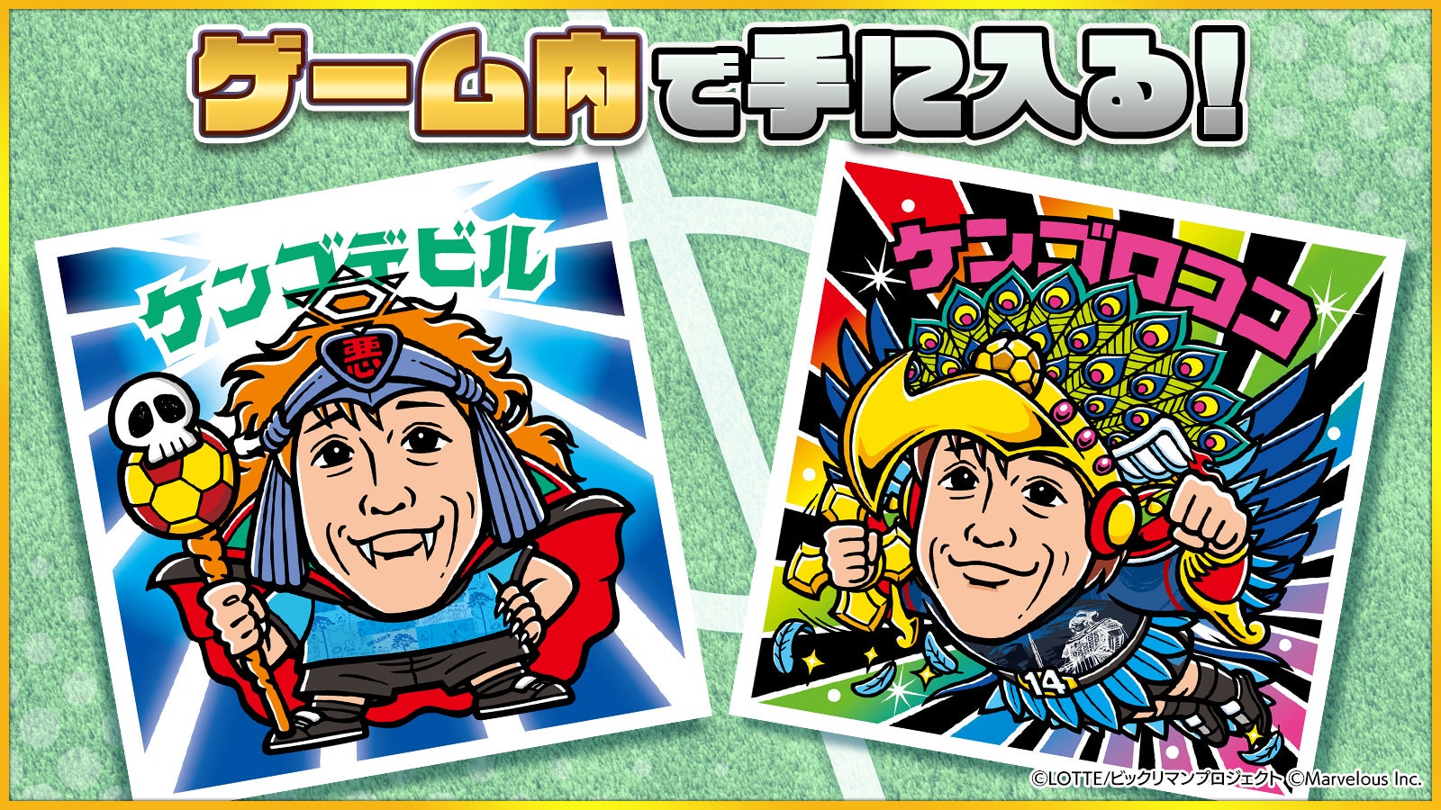 さらに、ビックリマン・ワンダーコレクションでは、2024年12月9日(月)メンテナンス後(17:30予定)~12月23日(月)までの期間限定で、中村憲剛さんとビックリマンがコラボしたゲーム内で使用できる「ケンゴロココ」および「ケンゴデビル」シールが手に入るコラボイベントを実施いたします。