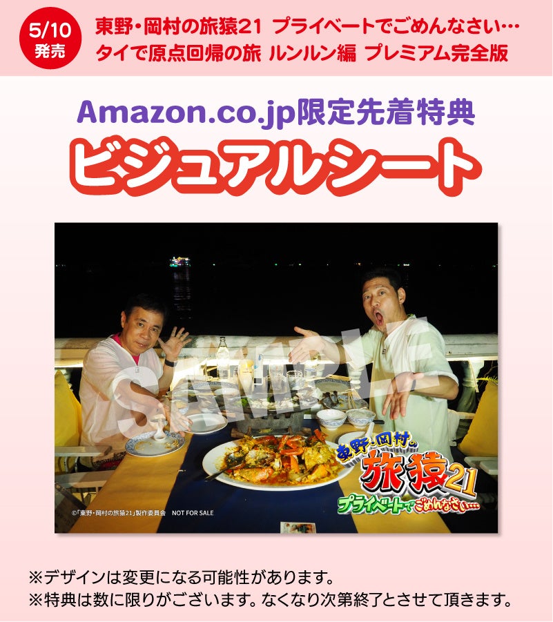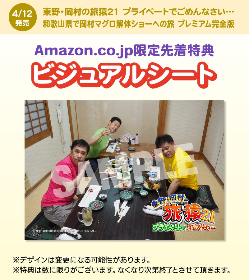 <旅猿21DVDシリーズ最新作>東野・岡村の旅猿21 プライベートでごめんなさい… プレミアム完全版 DVD発売決定! 4月12日(水)より発売開始!