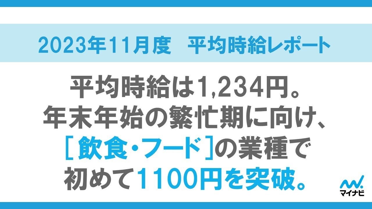 マイナビ、「2023年11月度アルバイト・パート平均時給レポート」を発表