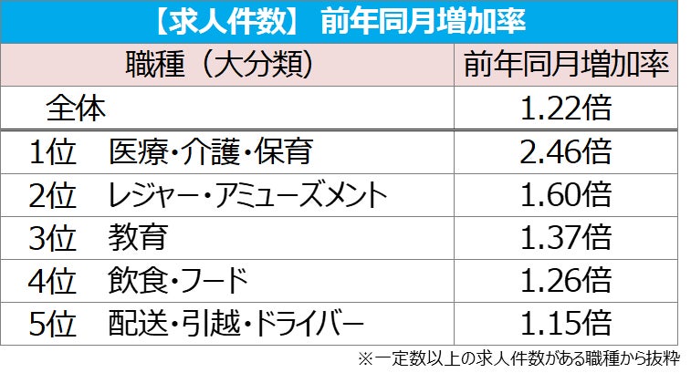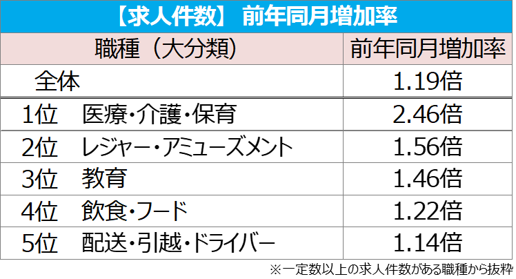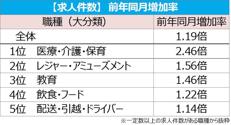 【図3】<全国>前年同月求人件数の増加率が高い職種TOP5