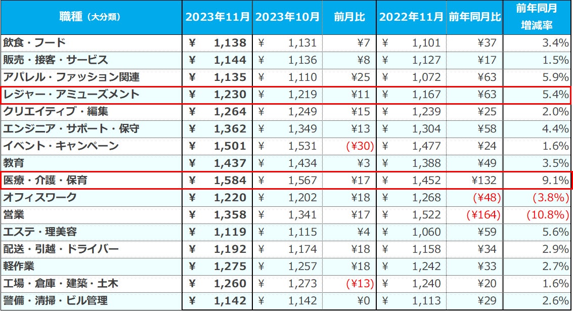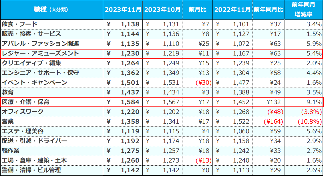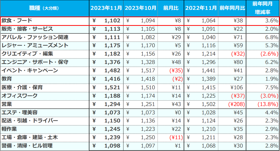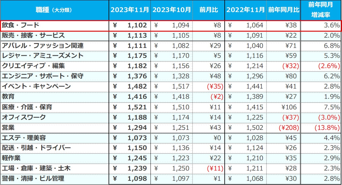 『2023年11月度 アルバイト・パート平均時給レポート』