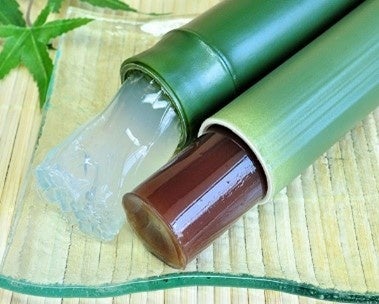 青竹風の容器に流し込んだ、暑い季節にピッタリの涼しげな水菓子。