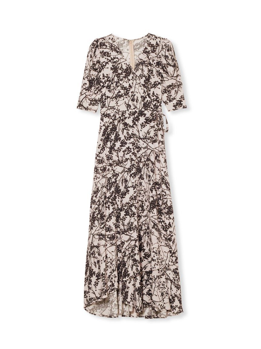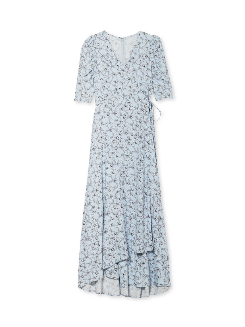 カシュクールデザインと花柄の組み合わせが、大人の女性らしさを演出してくれる1枚です。