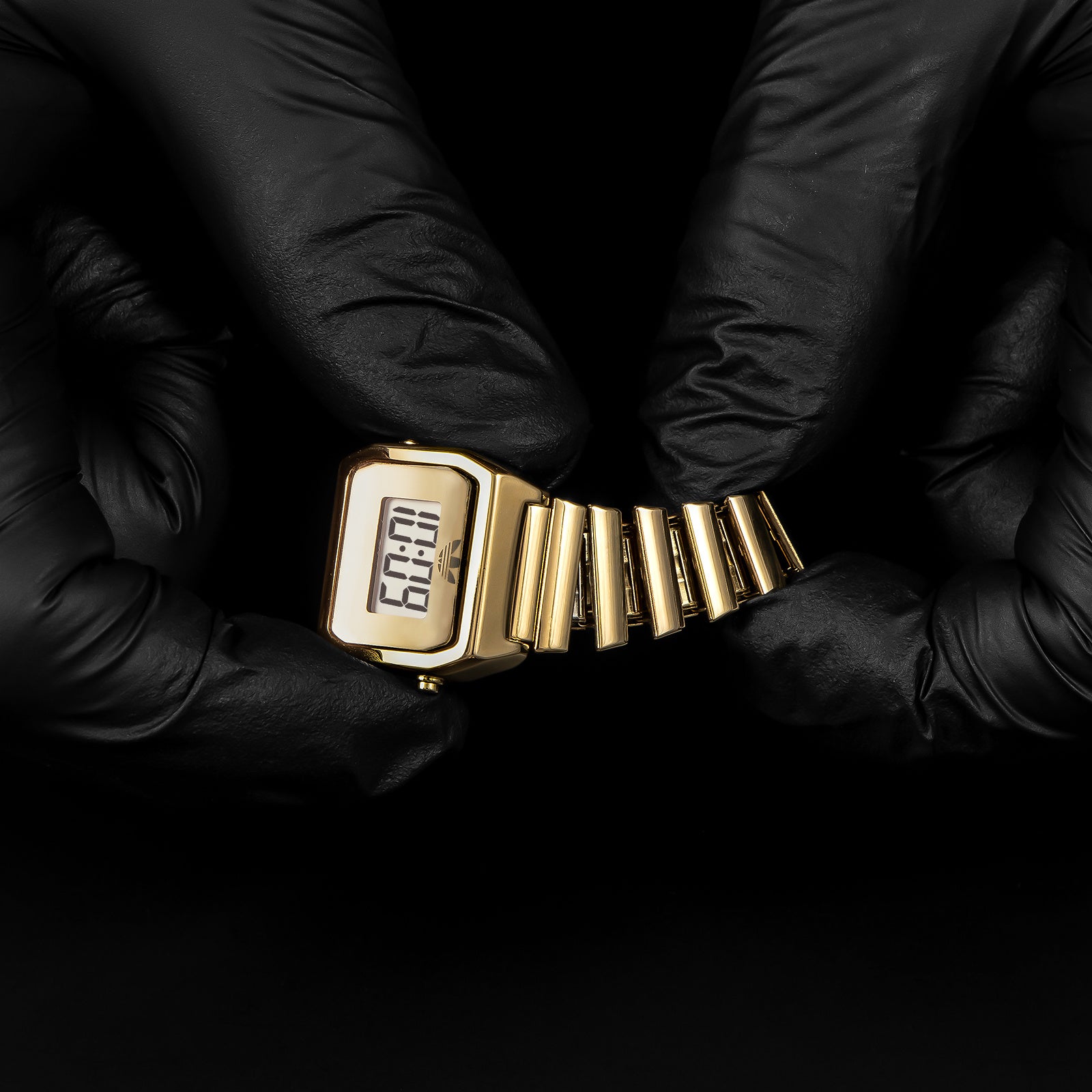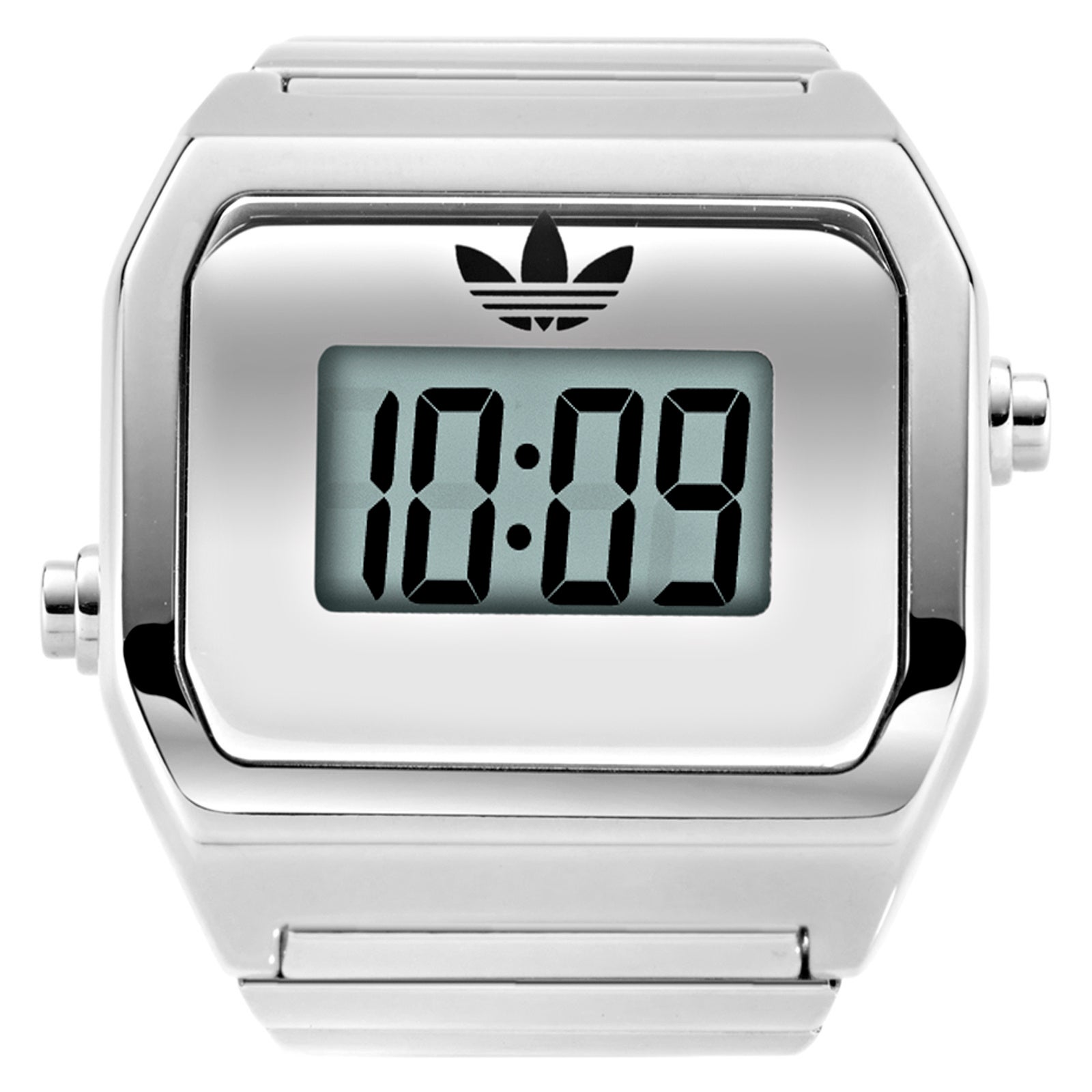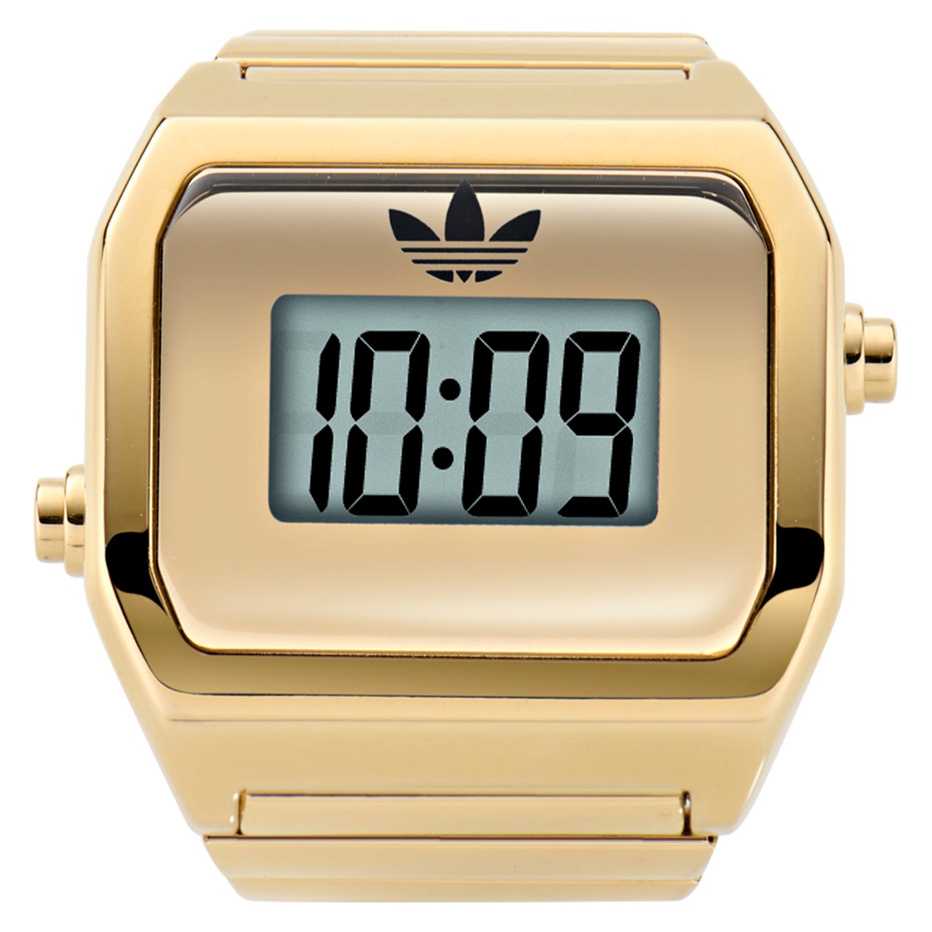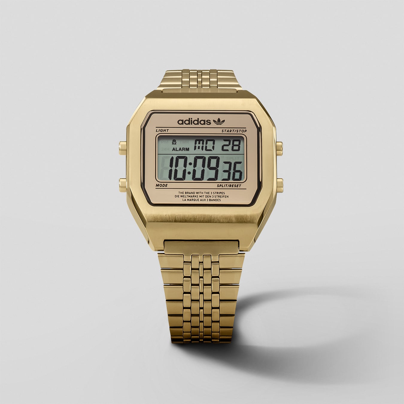 また、デジタルによる時刻表示をシンプルかつ大きくレイアウトし、視認性を最大限確保。アディダス オリジナルスのトレフォイルロゴを載せた以外に、一切装飾していないことでも、時刻を判読しやすくしています。