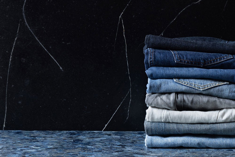 ステラポップボードは、色ごとに分別・保管されたデニム端材を使用して作られており、衣料廃棄材とは思えない鮮やかなカラーと豊かな表情を持ち合わせています。華やかでポップな柄や、ブルーデニムの味わいが残る柄、シルク糸で石目を表現した大理石風の柄など、全8柄を4×8板(1220×2430mm)のサイズでご用意しています。木材と同様の加工が簡単で、店舗什器や腰壁などの内装材としても幅広く使用可能です。