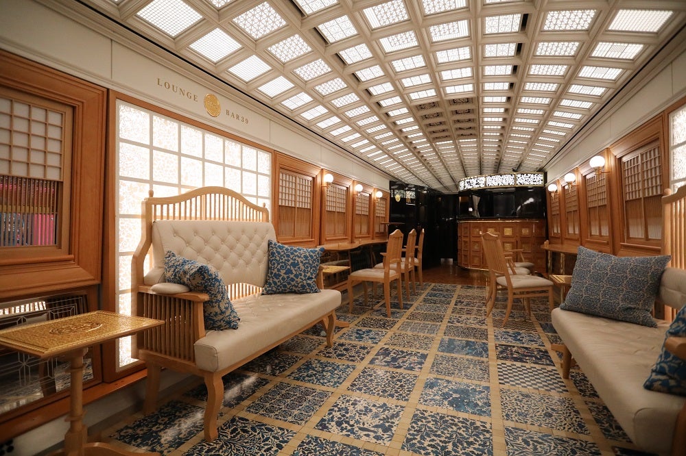 ▲工業デザイナーの水戸岡鋭治さんがデザインしたJR九州の観光列車「36ぷらす3」。乗客共用スペースのマルチカーは、優しい光が降り注ぐ開放的な空間だ。ここでは沿線に因んだイベントも実施される。