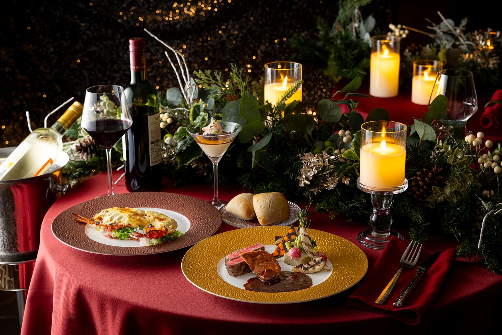 夕食 :「テラス レストラン」での「クリスマススペシャルディナーコース」のお席を確約 朝食:「テラス レストラン」でのヒルトンブレックファスト