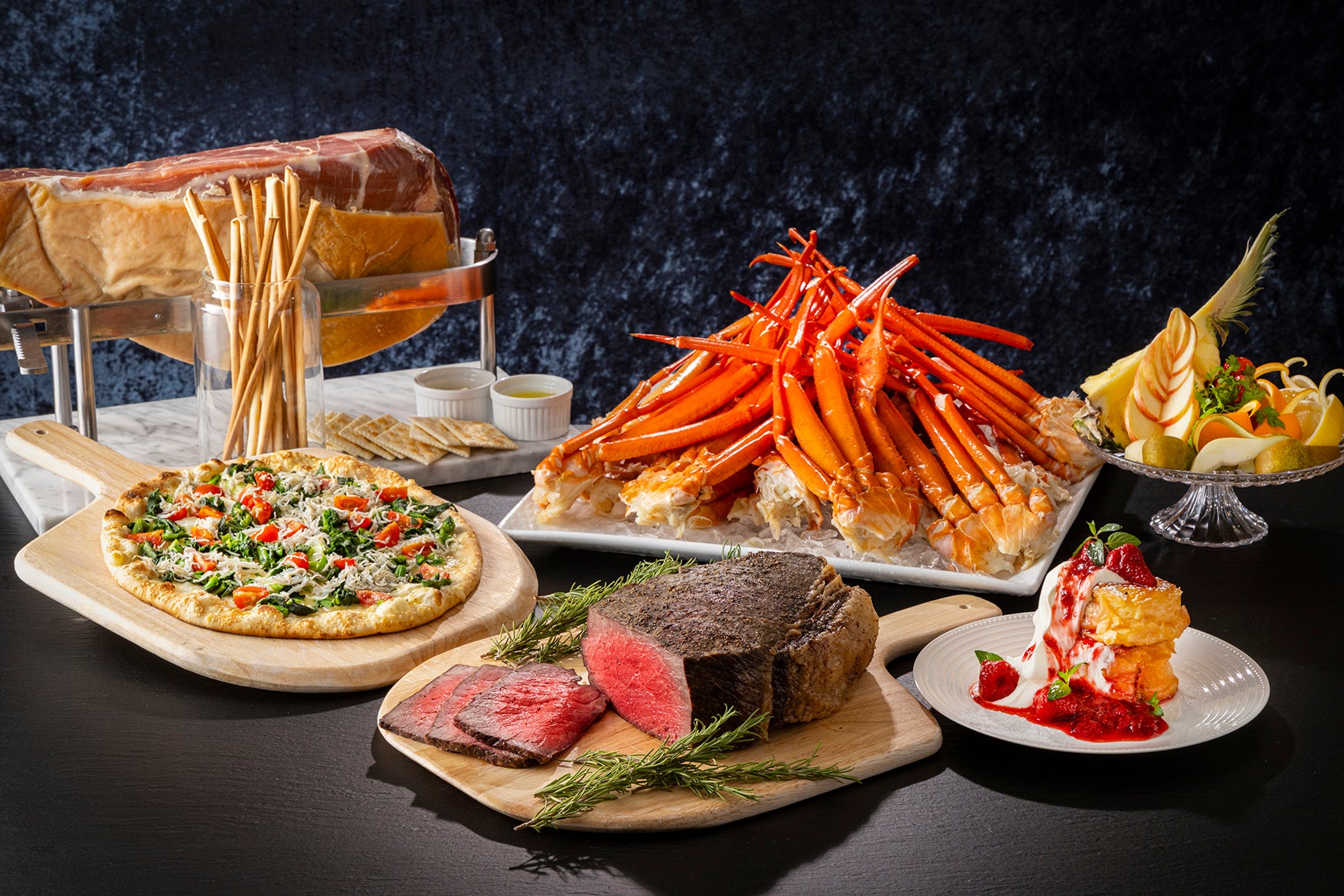 洋食プランは、「テラス レストラン」にて、ズワイ蟹食べ放題やシェフが切り分けるローストビーフ、焼きたてのピザなど、豪華メニューが並ぶディナービュッフェが魅力です。