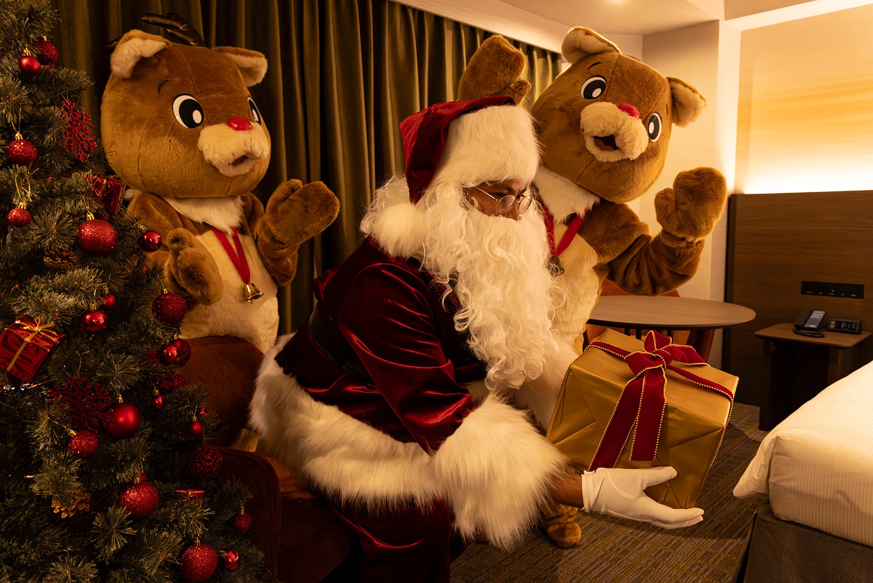 ・事前にお預かりしたプレゼントをサンタクロースとトナカイがお部屋へデリバリー