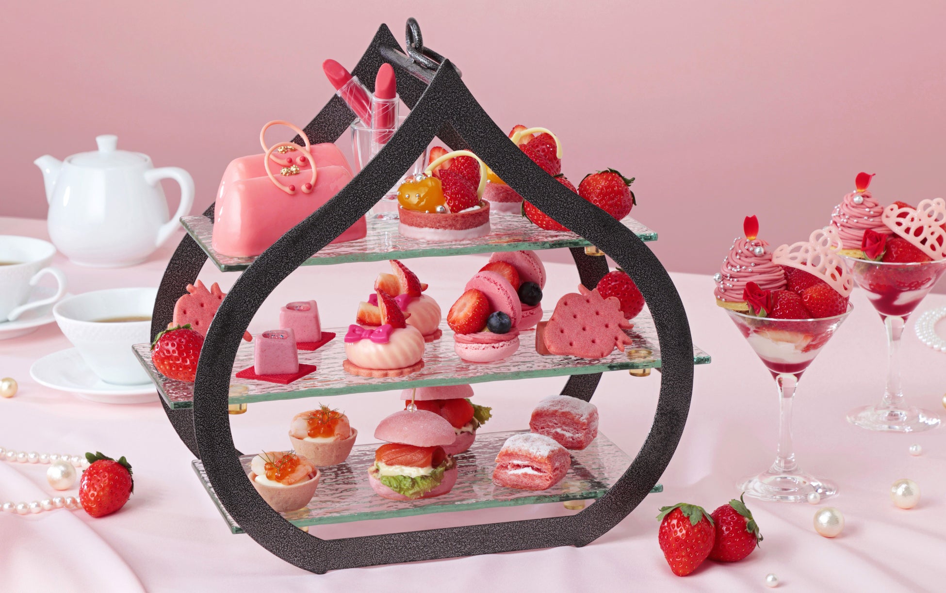 人気のいちごアフタヌーンティー第2弾のテーマは“KAWAII”。コスメやバッグ、煌めく宝石などをモチーフに春らしいピンクを基調としたスイーツ全8種が登場します。季節の紅茶「バラと木苺の紅茶」「森いちごのルイボスティー(ノンカフェイン)」にもご注目です。