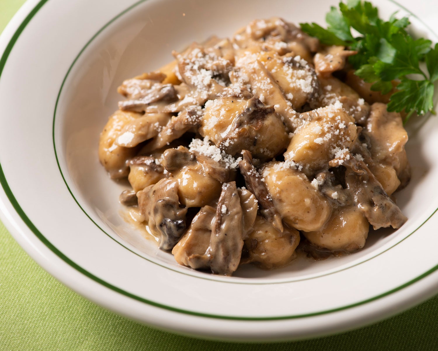 RISTORANTE HONDA×ラクリッチ/ ポルチーニとエリンギのクリームソース・ニョッキ/ 253gイタリア産のポルチーニ茸とエリンギをじっくり炒めて、旨味を引き出したところに、生クリームで煮込んでポテトニョッキと和えました。香ばしいポルチーニの香りとモチモチしたニョッキにグラナパダーノチーズを振りかけてお召し上がりください。