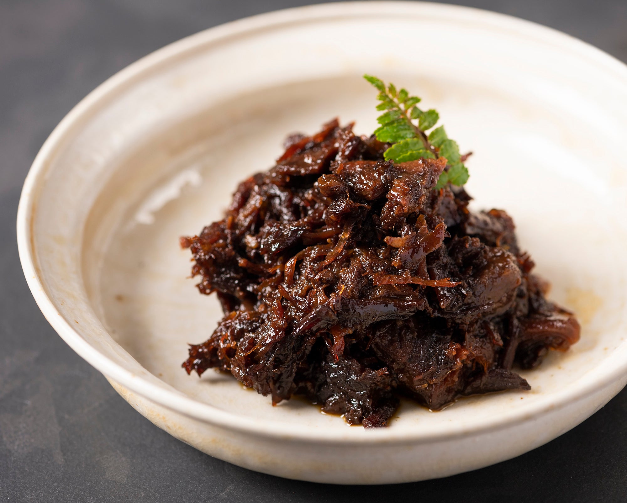 しっとりとしていて、肉の塊、繊維質を感じられるしぐれ煮です。創業80有余年、精肉卸の「小川畜産」が厳選した素材が生かされています。甘い味付けのしぐれ煮は、ご飯のお供はもちろん、ひつまぶし風に出汁をかけても美味です。