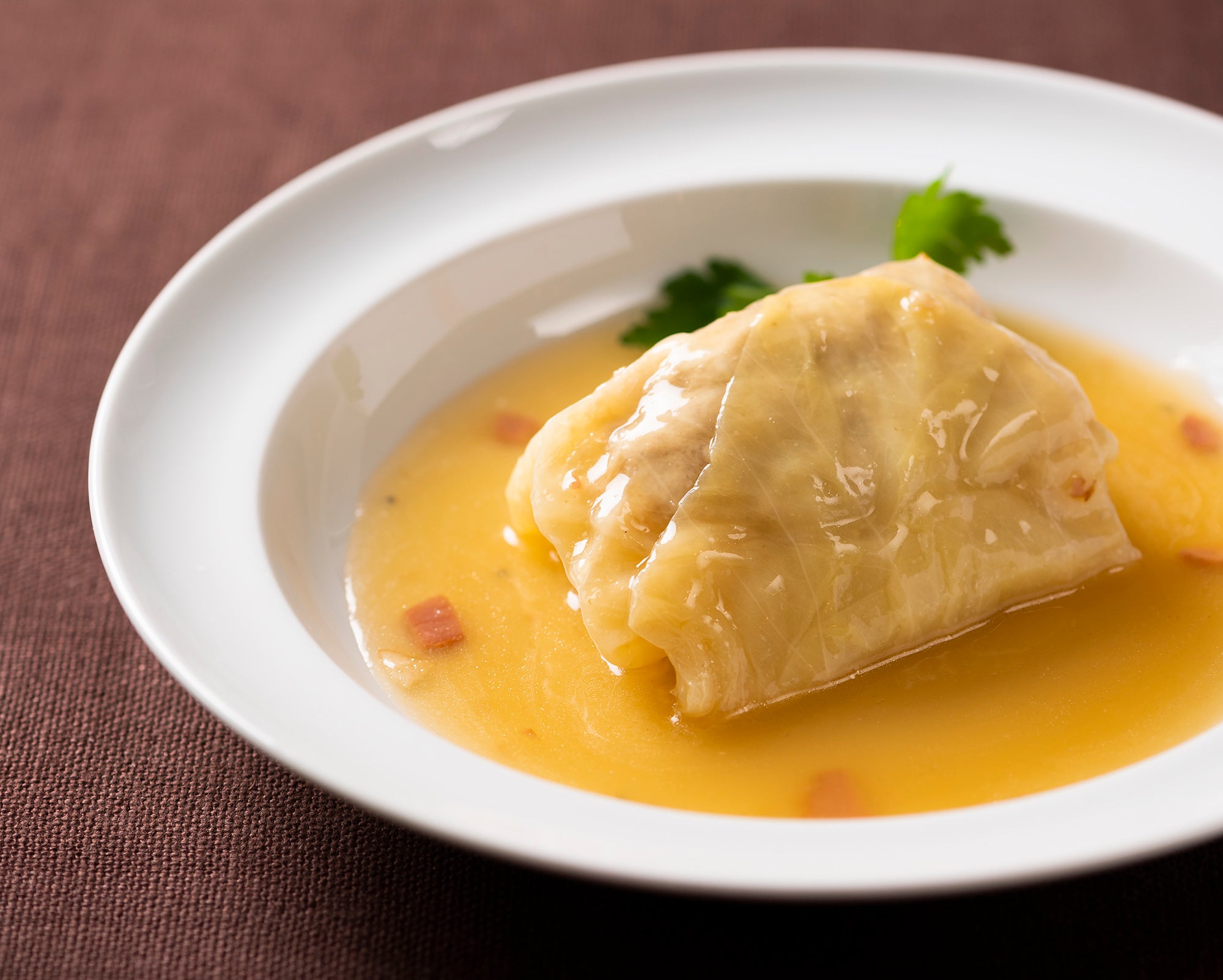 ベーコンの旨みが溶け込んだコンソメスープに、国産豚肉の旨み、国産キャベツの甘味もプラスされたコクのある味わいに仕上げました。しっかり食べ応えある200g(コンソメソース含む)のロールキャベツですので、食卓のメインはもちろん、白ワインとのペアリングもおすすめです。