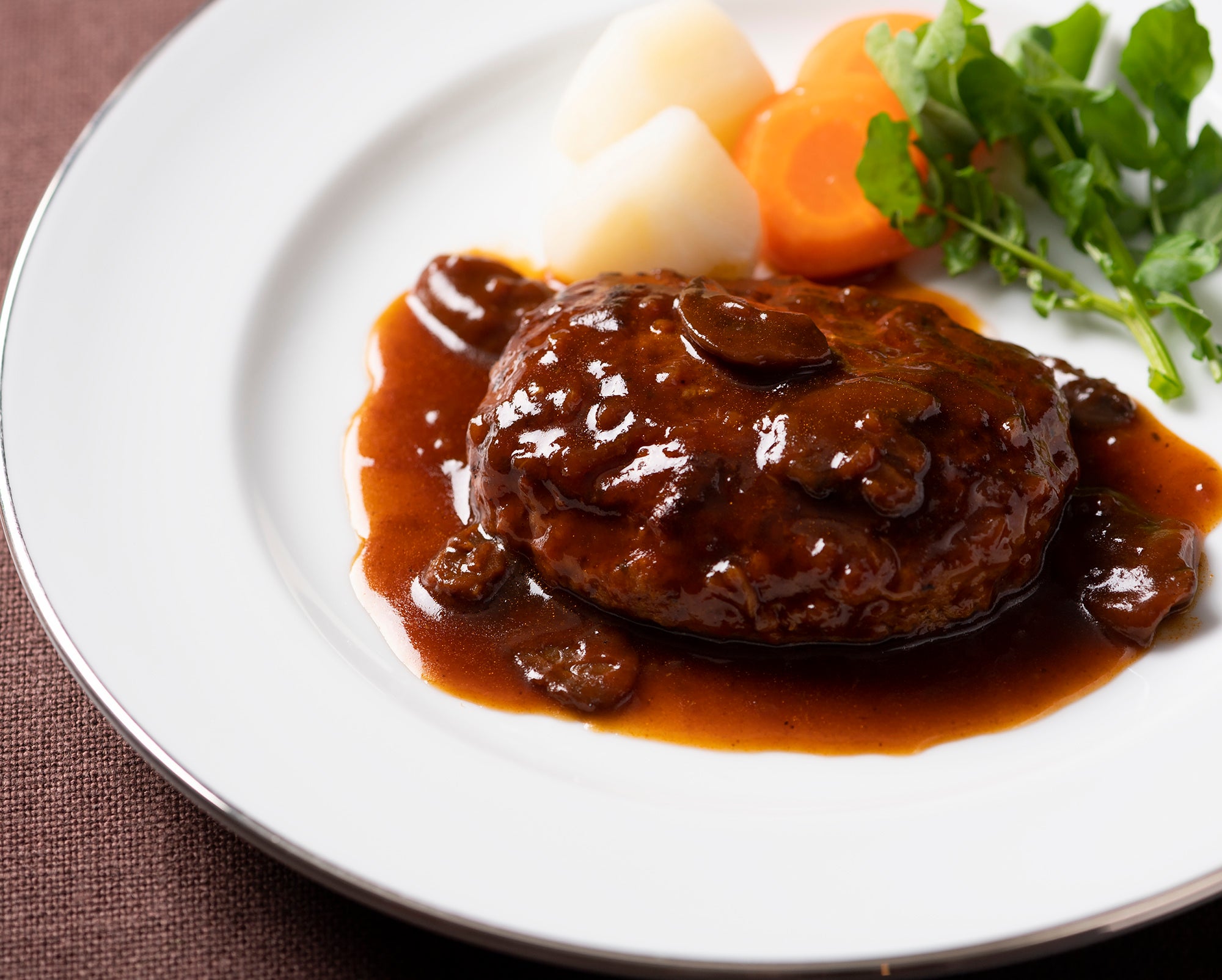 こだわりの配合で仕上げたハンバーグに、長時間じっくりと煮込んだデミグラスソースを合わせました。デパ地下で長年にわたって愛されるロングセラー商品です。おかずとして冷凍庫にあると便利な一品です。