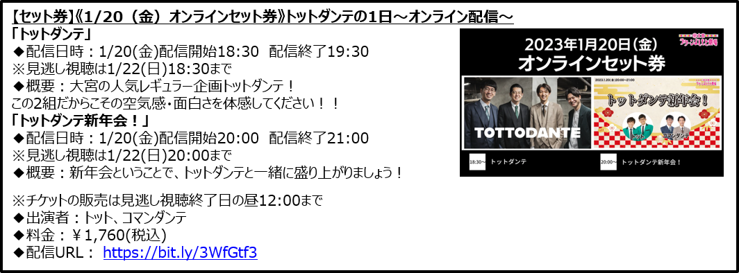 【セット券】《1/20(金)オンラインセット券》トットダンテの1日~オンライン配信~