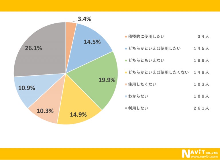一方で、「どちらかといえば使用したくない」と回答した方は14.9%、「使用したくない」と回答した方は10.3%でした。