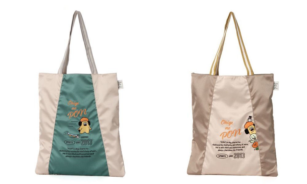 今年で誕生10周年を迎える「おひげのポン」は、キャラクターデザイナー・かなざわ まこと氏が描く、おヒゲとお耳が特徴的な犬の男の子「ポン」と、「おひげの森」に住む愉快な仲間達とのお話です。今回のコラボレーションアイテムでは、主人公の「ポン」だけでなく、「おひげのポン」コラボレーションアイテムでは初登場で、今回niko and ...とコラボレーションを機に名付けられた女の子のキャラクター「ニコ」とのアートを施した生活雑貨を展開します。スカジャン風デザインで大人っぽく仕上げたA4サイズがすっぽりと入る「トートバッグ」や、インテリアや日常使いにも活躍する「バンダナ」、雨の日も楽しくなる「ビニガサ」などをラインアップ。バスケットボールやスケートボードなどスポーツをする「ポン」が、ユーモアたっぷりで子どもから大人まで癒されるコレクションに仕上がりました。