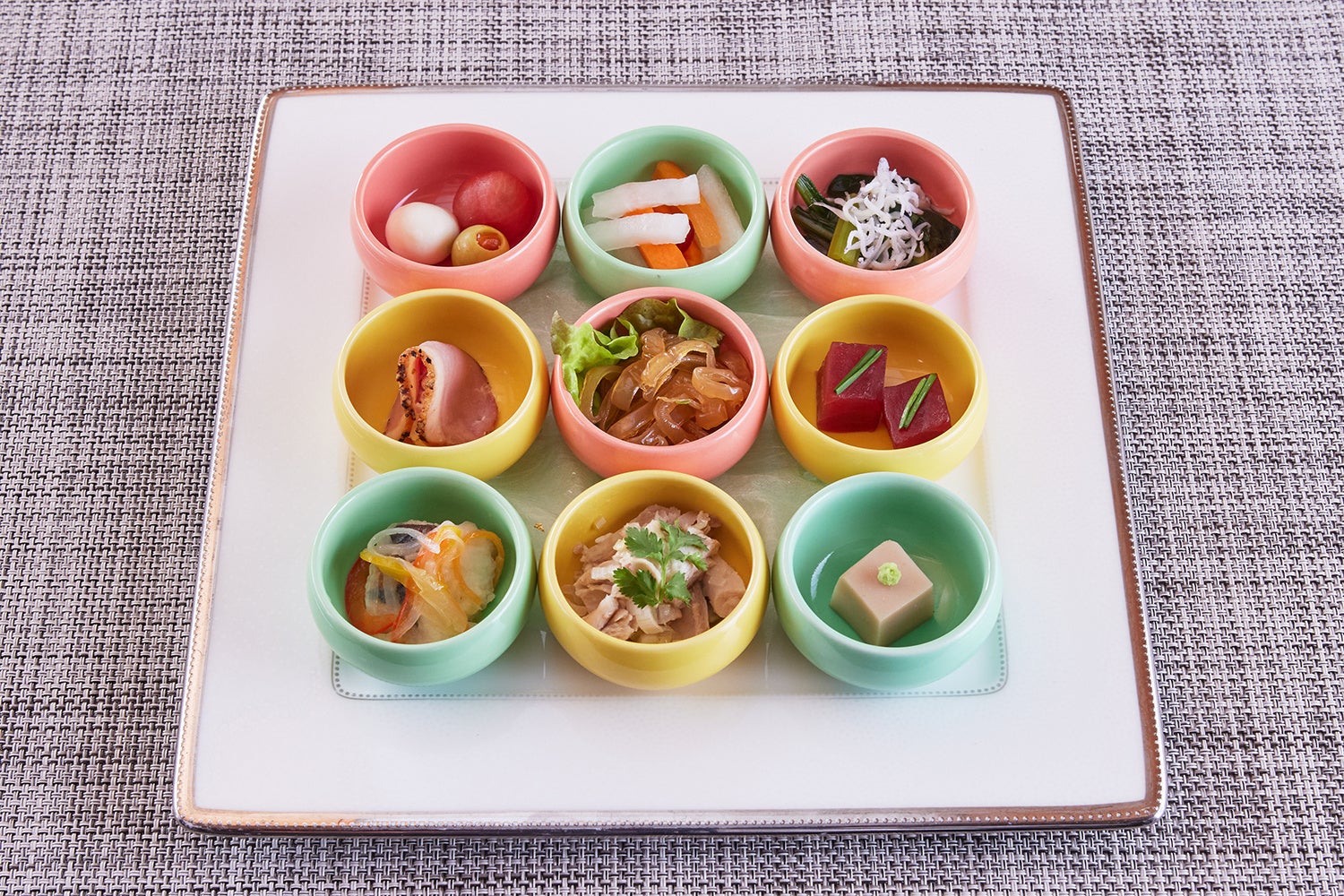 さらに、セットには彩り鮮やかな和洋中9種の小鉢前菜が付いており、同期間中は、小鉢にも長崎県産の食材を使ったメニューをご用意します。