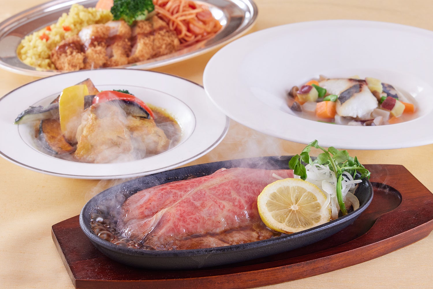 当ディナーセットでは、和食、洋食、中国料理よりメイン料理をお選びいただけます。グルメフェア開催中は「長崎ちゃんぽんセット」「長崎県産和牛のすき煮定食」など長崎の名物料理をラインアップいたします。